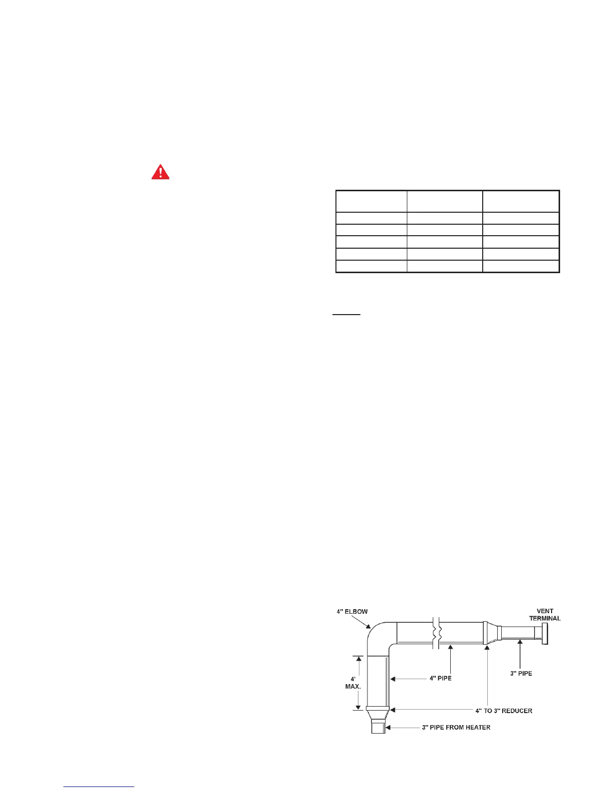A minimum of 2 inches, maximum of 4 feet of 3" pipe must be