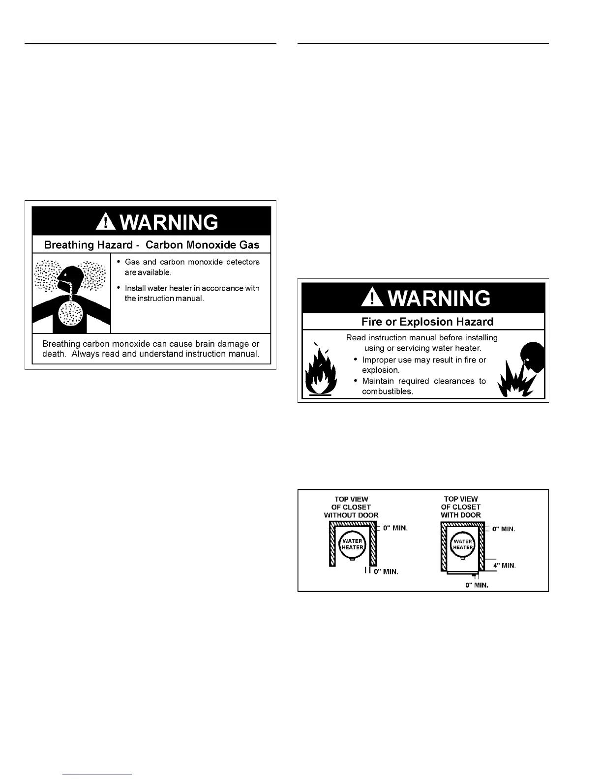 and noncombustible construction are: 0 in. from sides, 0 in. from
