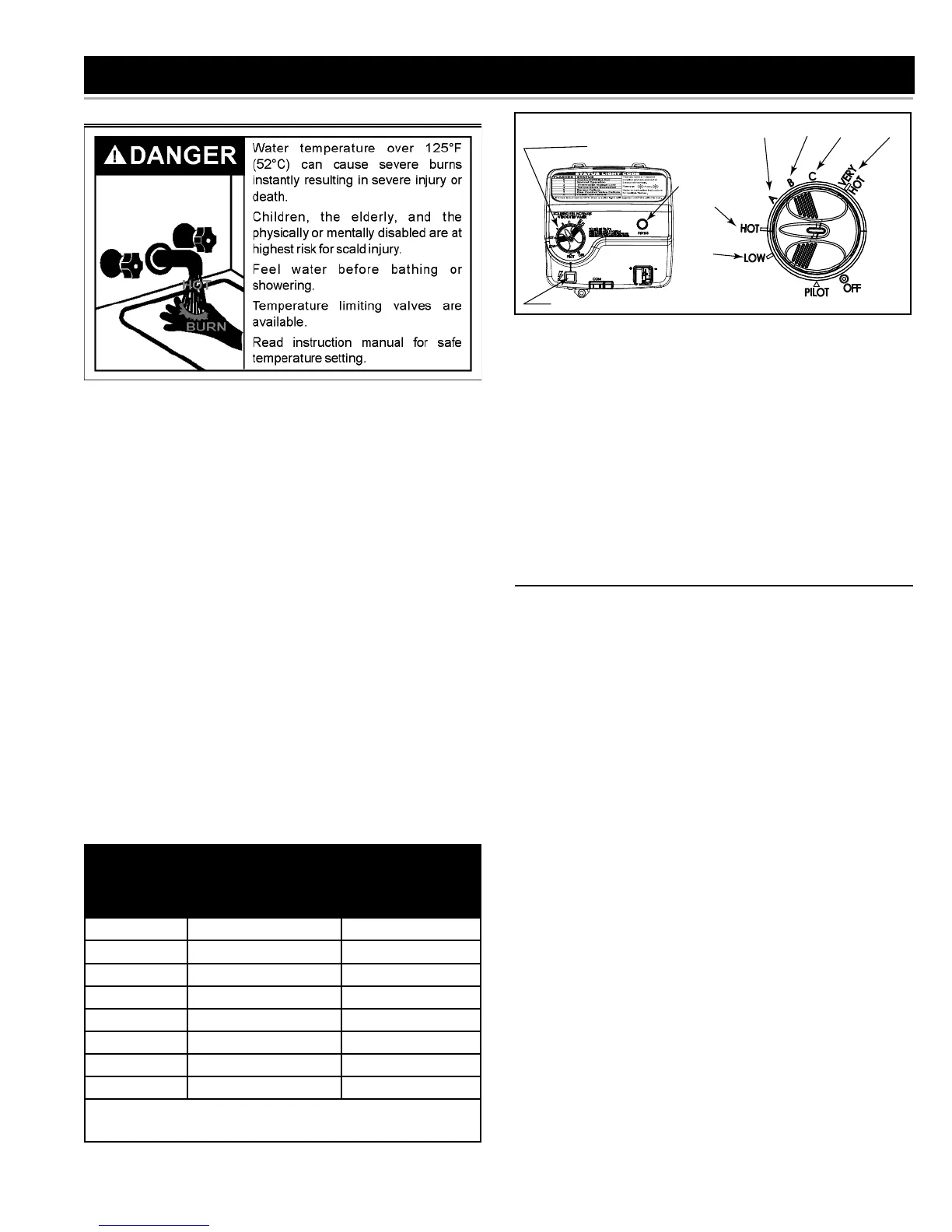 NOTE: Temperatures shown on the gas control valve/thermostat