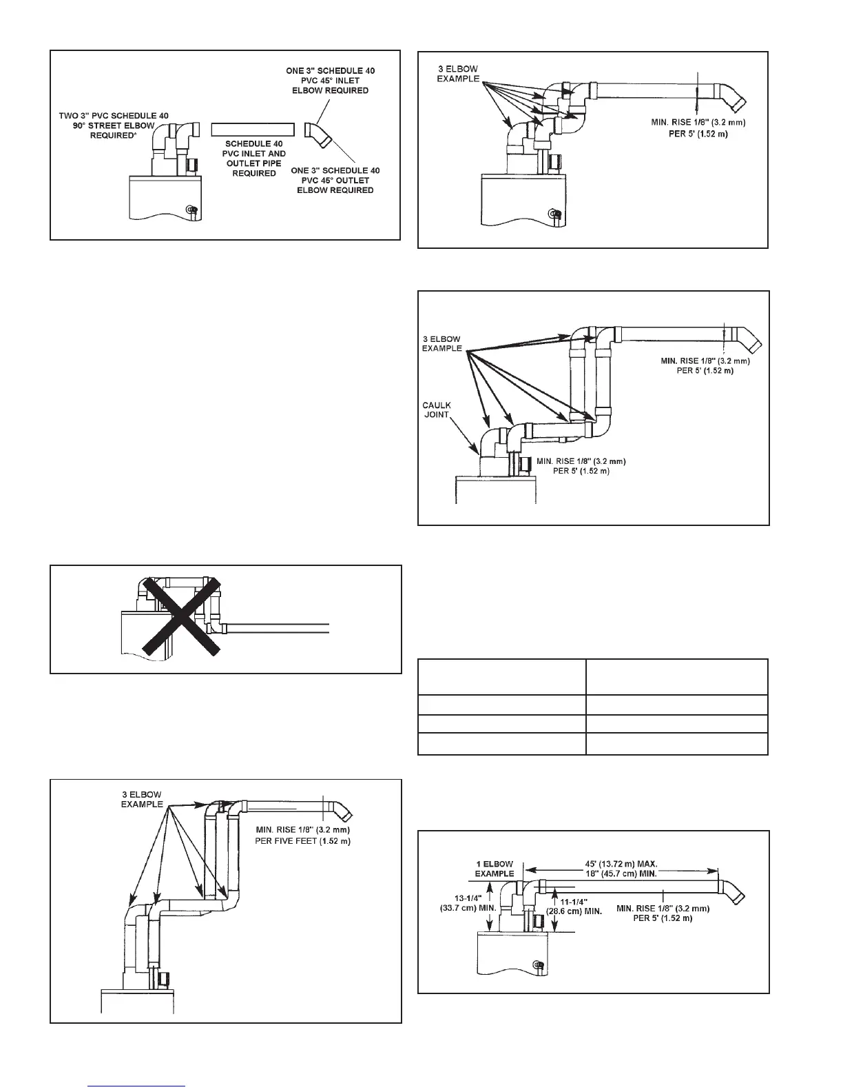 1. Horizontal runs require a minimum 1/8" (3.2mm) rise per 5' (1.52 m).