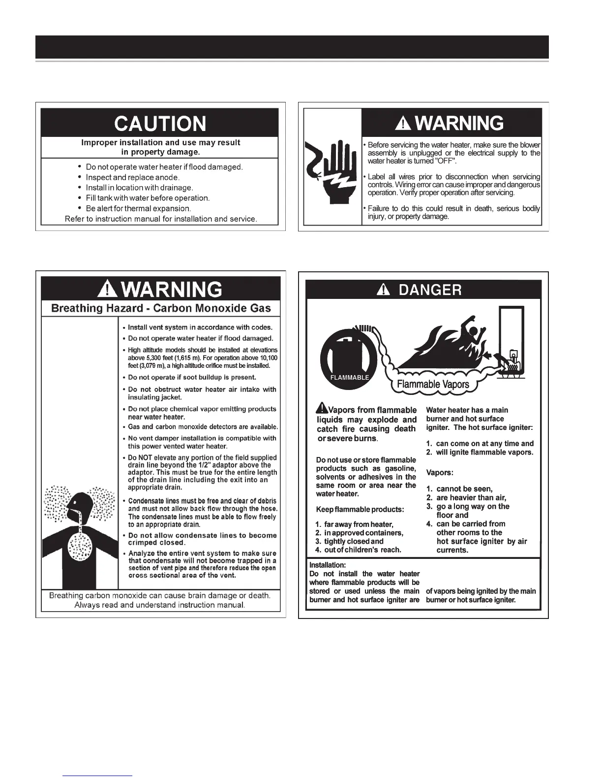 A.O. Smith Gphe 50 - General Safety Information (Continued); Property Damage, Servicing, CO, and Flammable Vapor Hazards