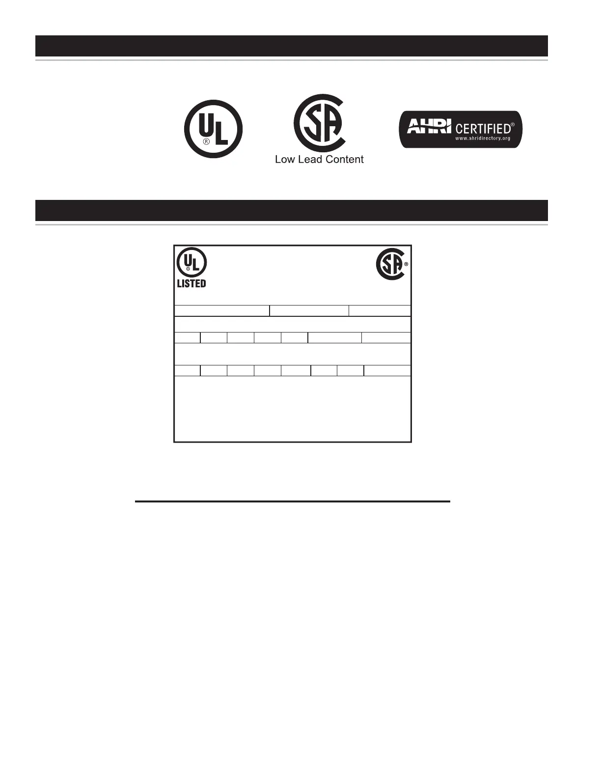 A.O. Smith LTE 66D - Approvals; Model and Rating