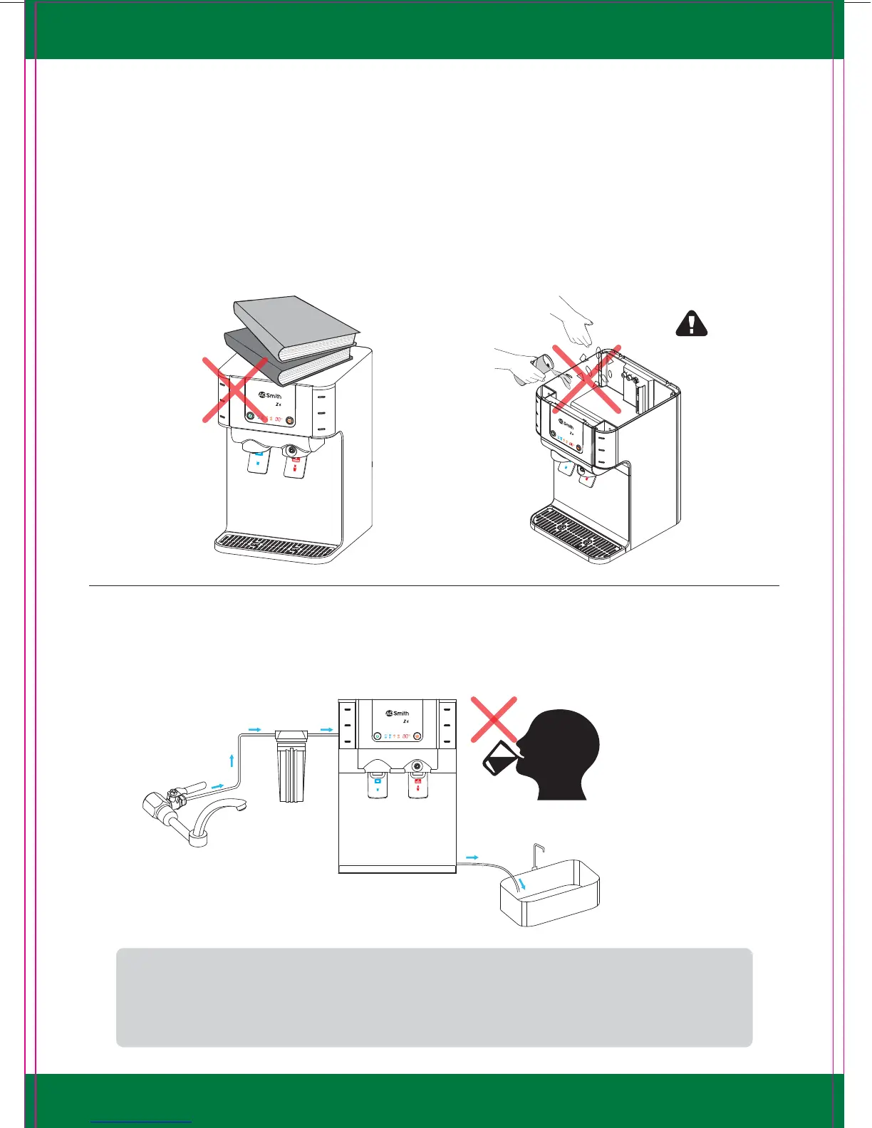 Note: It is recommended not to switch off the water purifier and/or turn off the water supply to