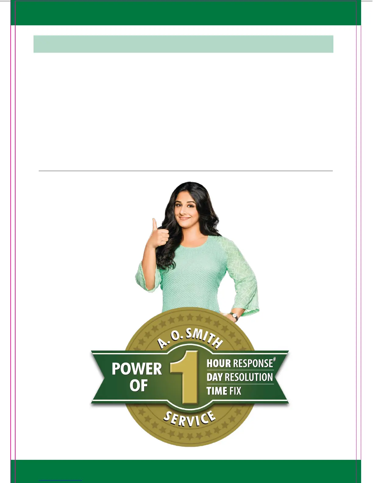 1. Available in selected cities, for details log on to www.aosmithindia.com or call at