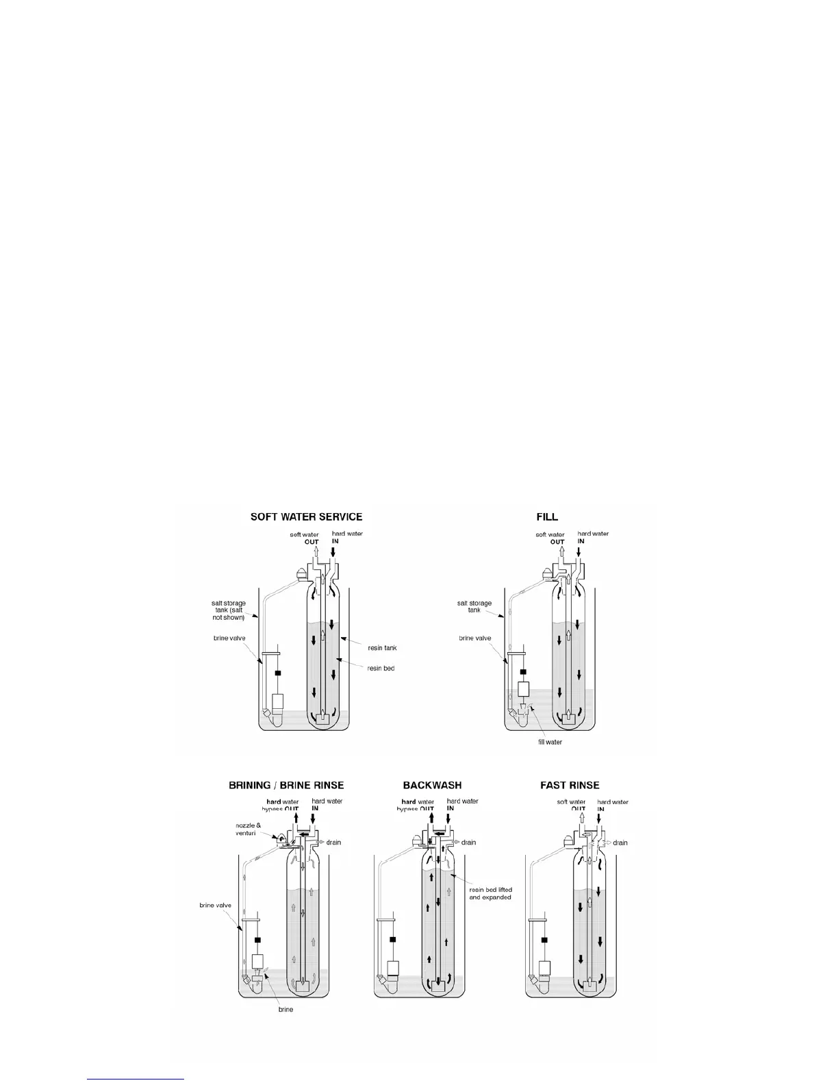 resin tank. The fast flow flushes brine from the bottom of the tank, and packs
