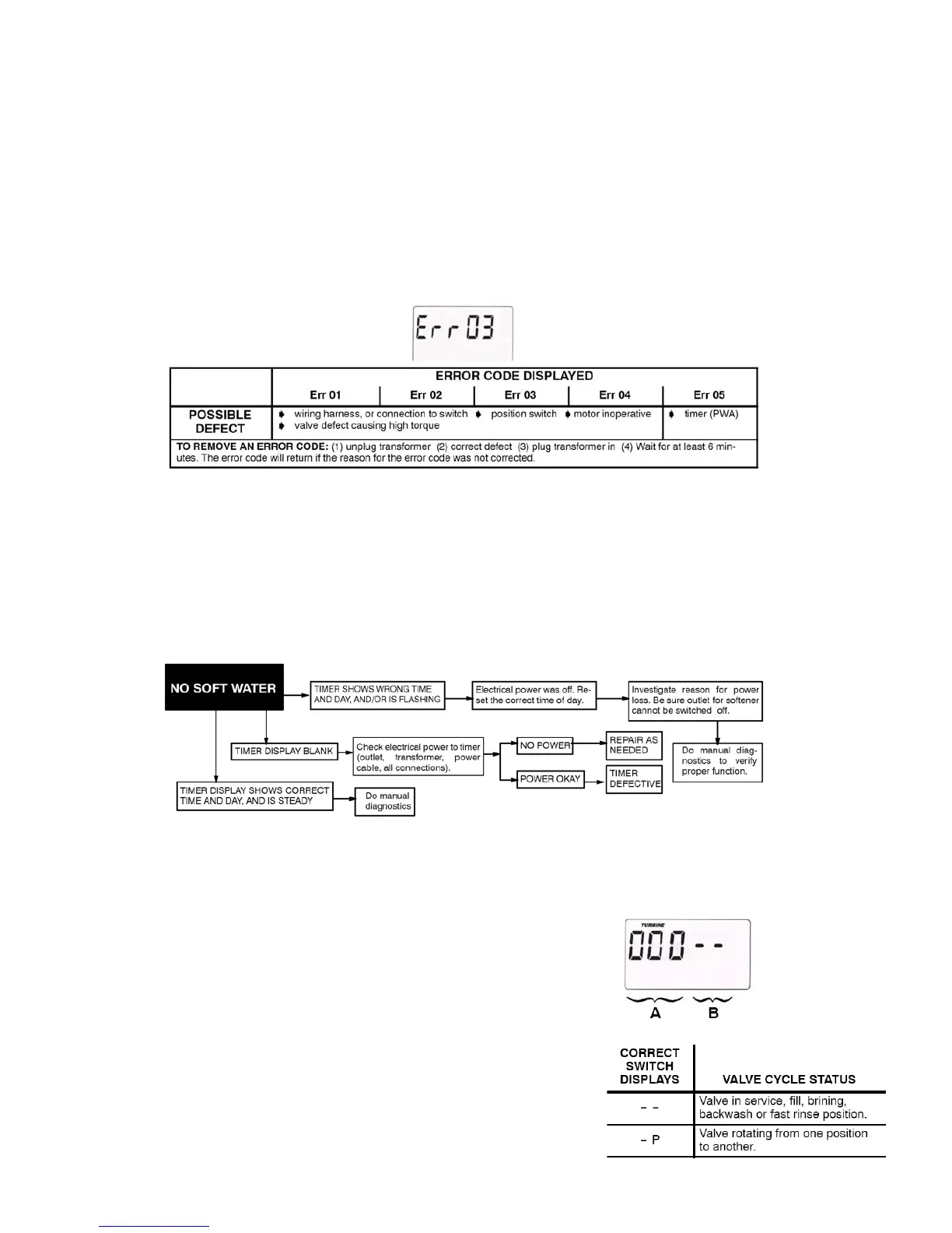 If you are not getting soft water, and an error code is not displayed, use the procedures