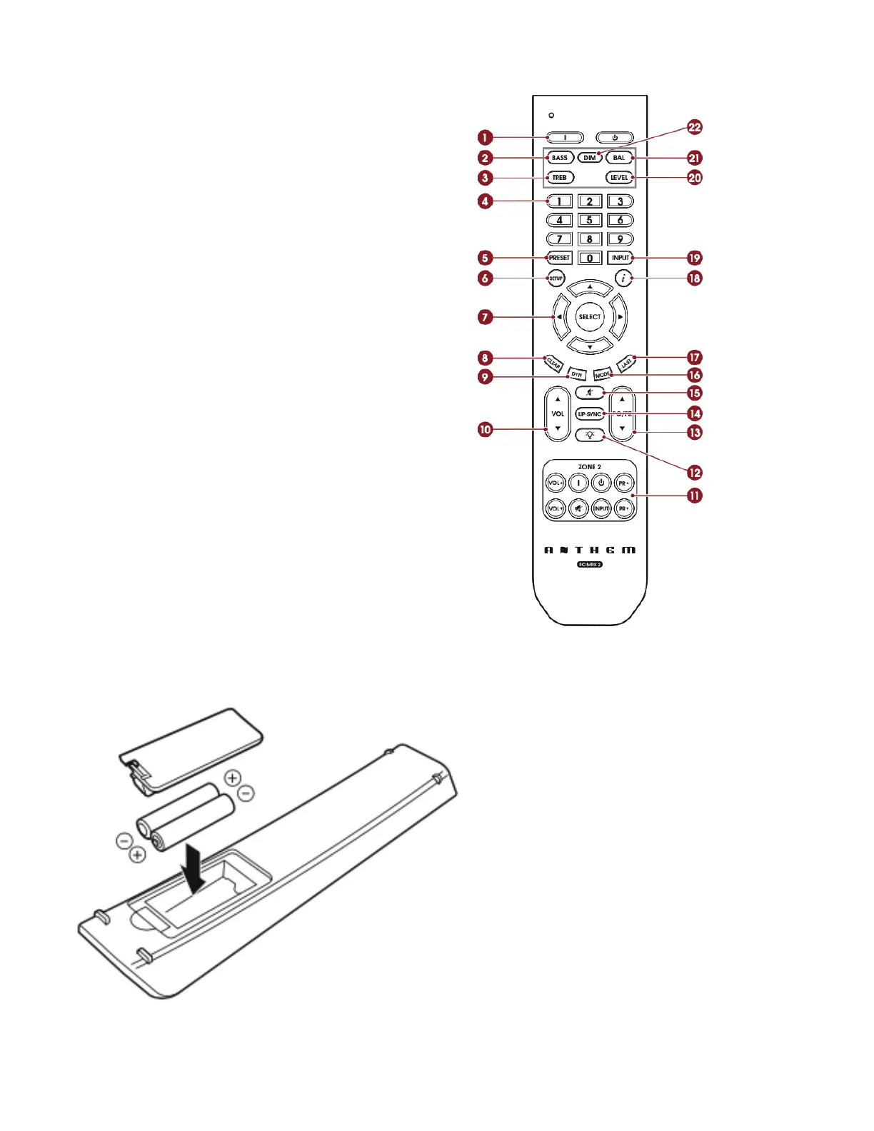 a-them AVM 70 - Remote Control; Remote Control Button Functions