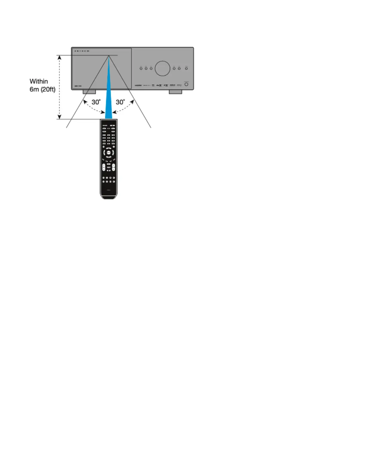 The MRX/AVM remote control operates best when used within the range and distance shown in the illustration below.