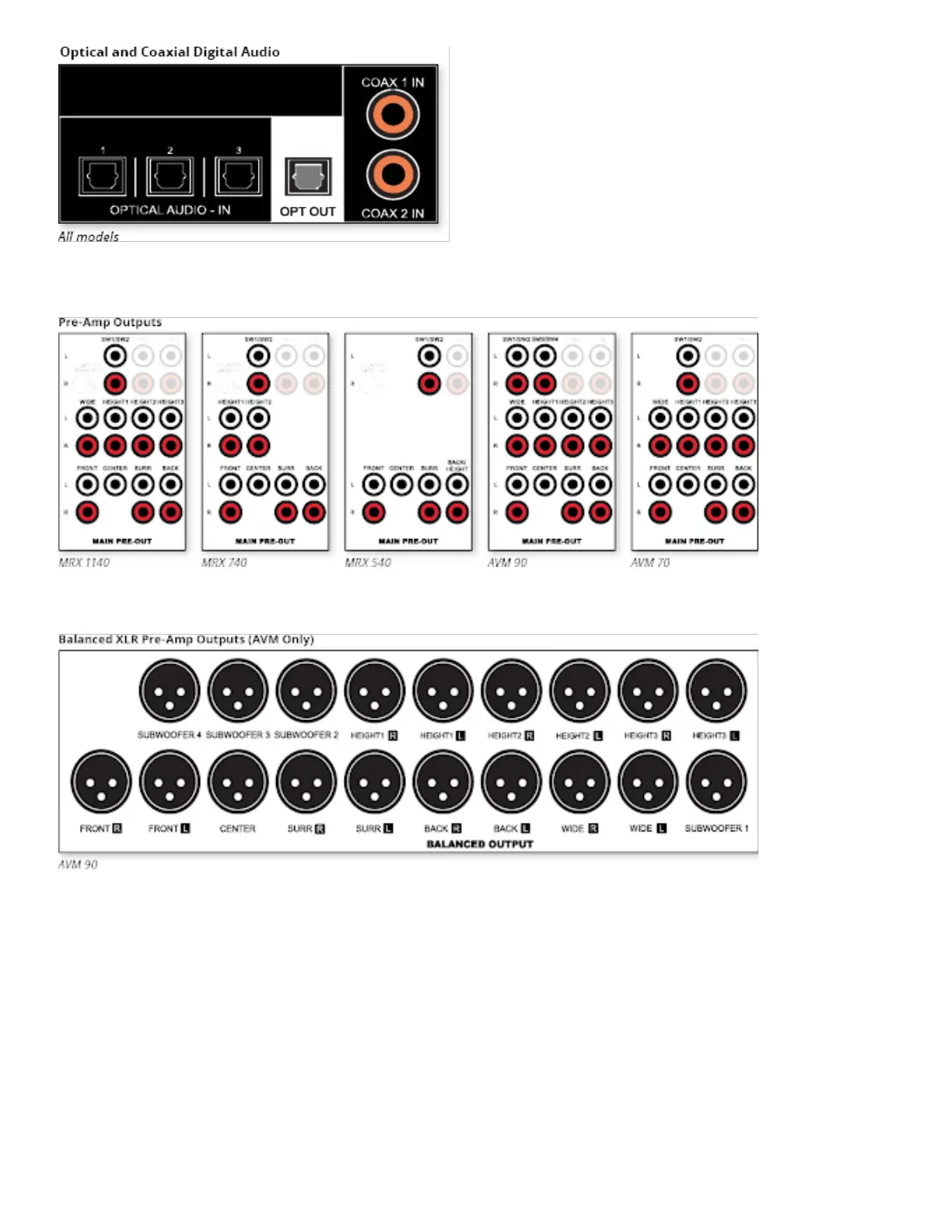 With the AVM models, the RCA and XLR outputs have identical signals at the same time (XLR connections are suitable