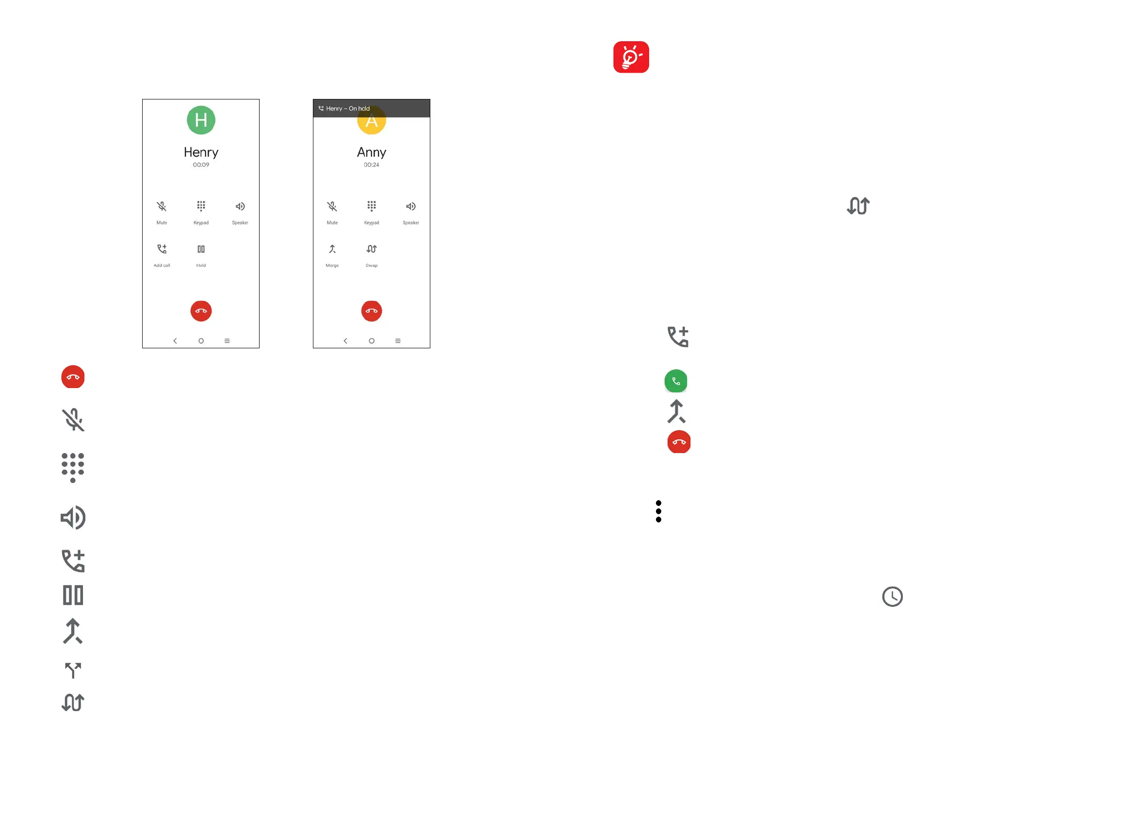Touch from the Phone screen, then touch Settings to set phone and contact
