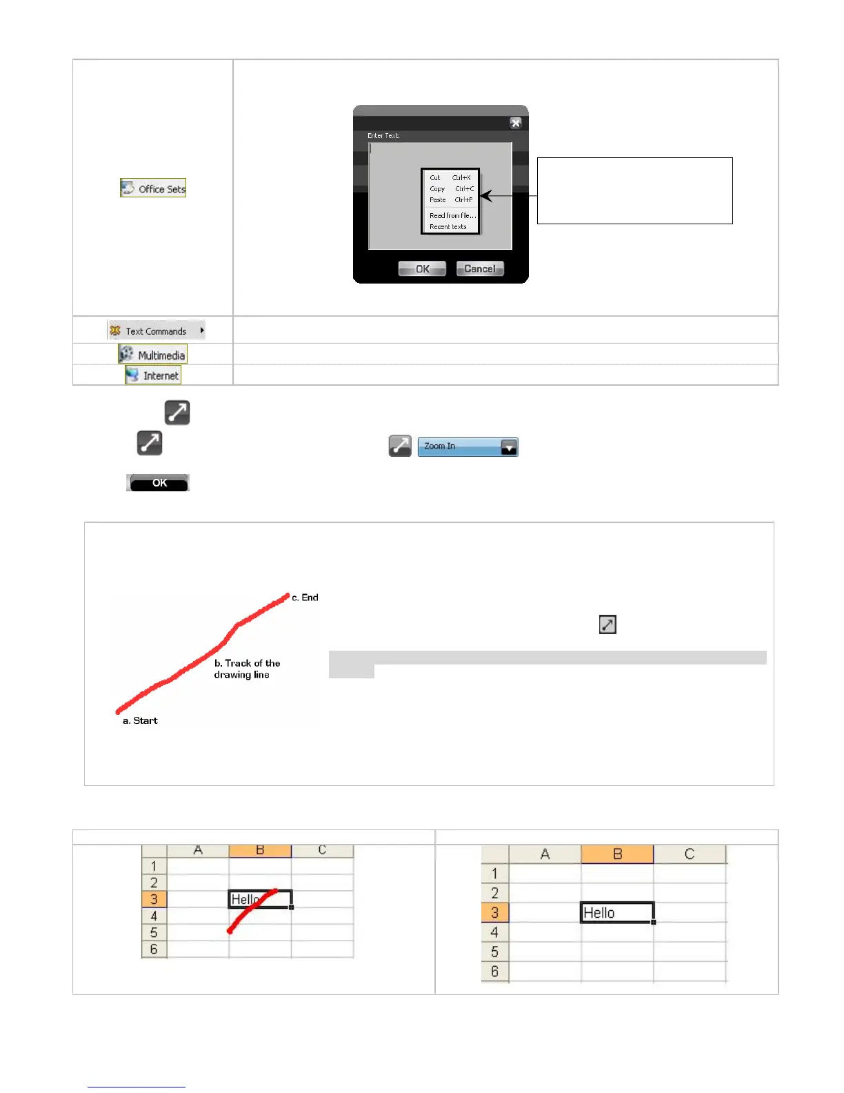 Zoom In & Zoom Out, Paste Text, Execute Program.