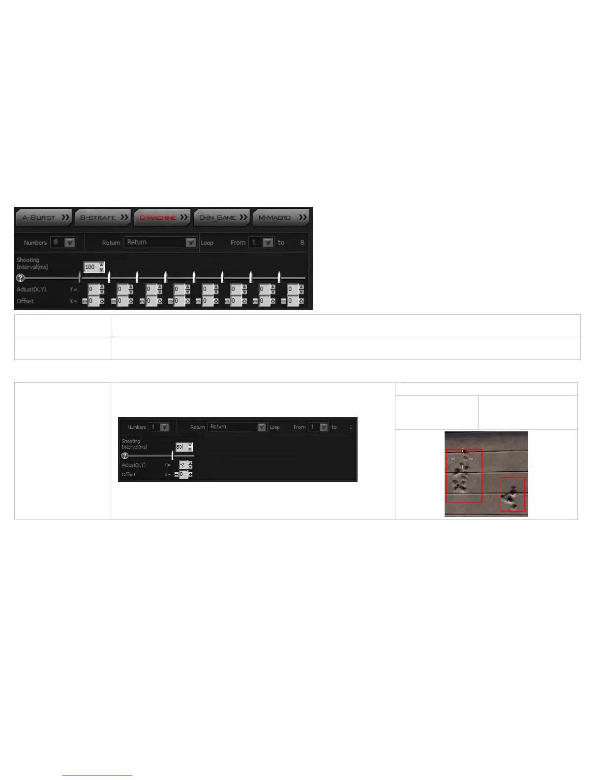 Timeintervalsettings Inthis[C‐Machine]mode,themachinegunwillshootatthefixedspeeddefinedbythegames,beforeyoucanstarttoadjusttheoffset,youhaveto