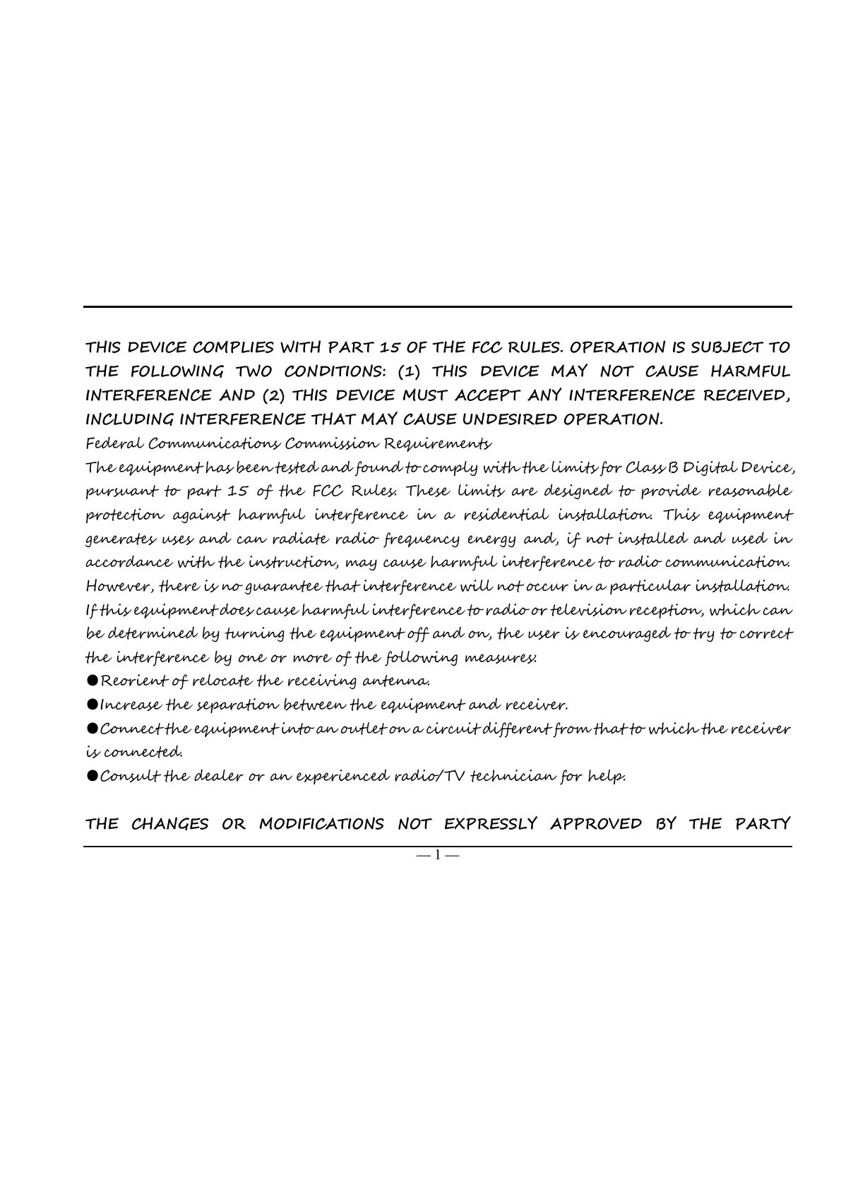 THIS DEVICE COMPLIES WITH PART 15 OF THE FCC RULES. OPERATION IS SUBJECT TO