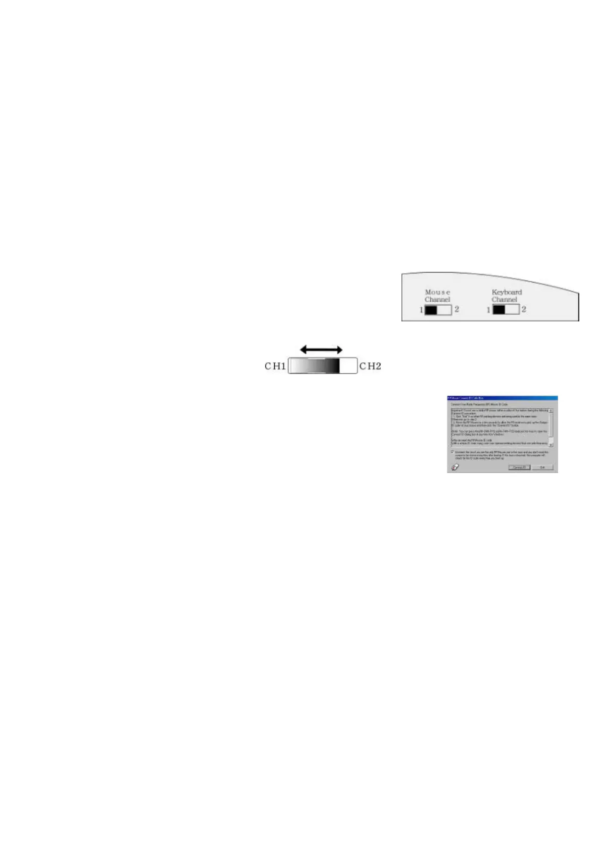 following to change the frequency channel for your keyboard and mouse: Set the frequency channel on the receiver to 1 or 2. Set the frequency channel on the