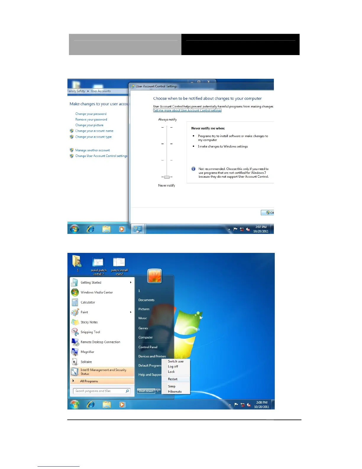 2. Change User Account Control Settings to [Never notify]