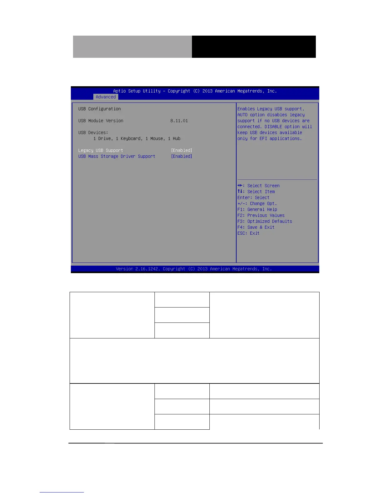 Enables BIOS Support for Legacy USB Support. When enabled, USB can be