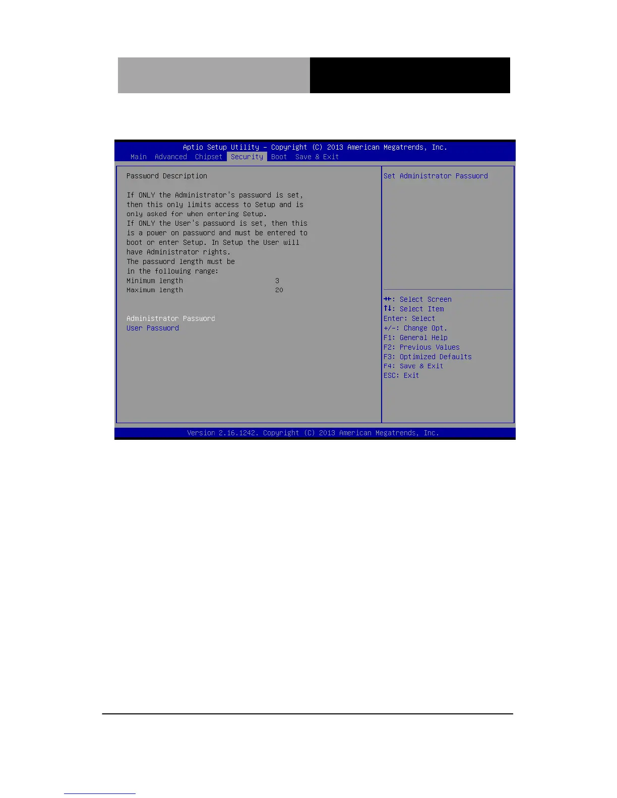 Setup submenu: Security