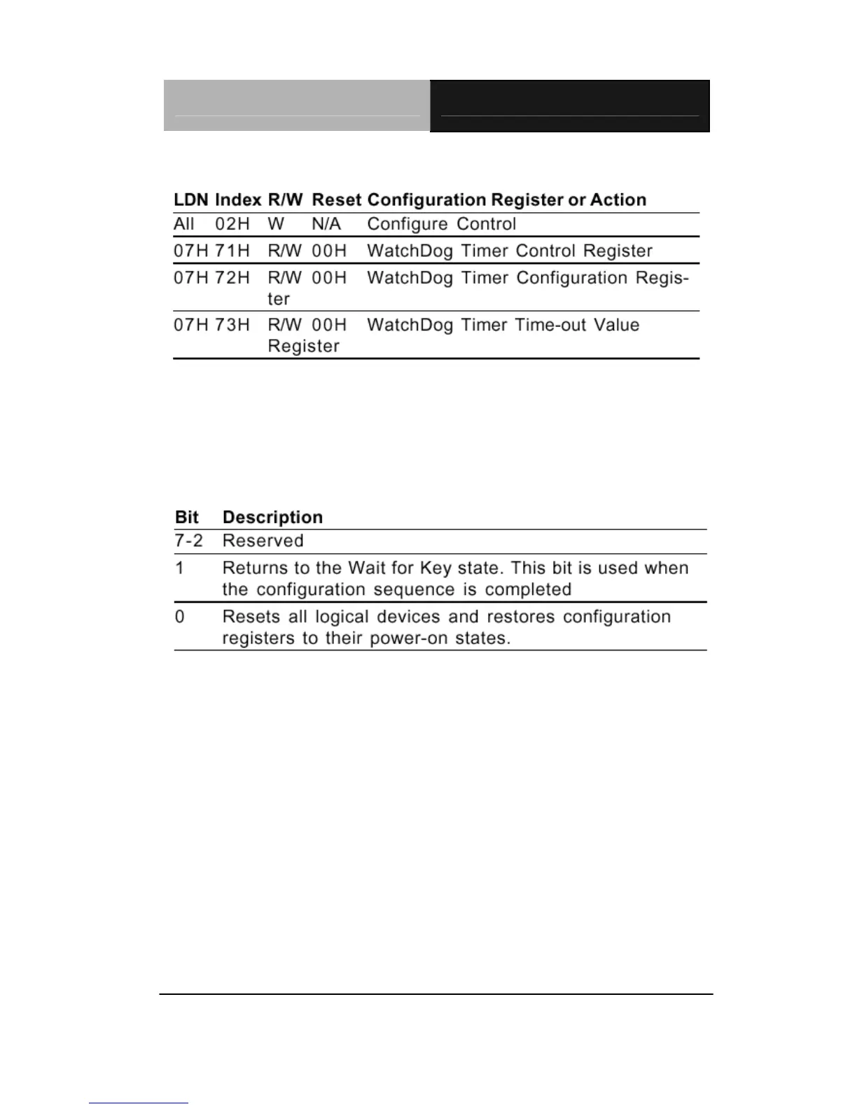 WatchDog Timer Configuration Registers