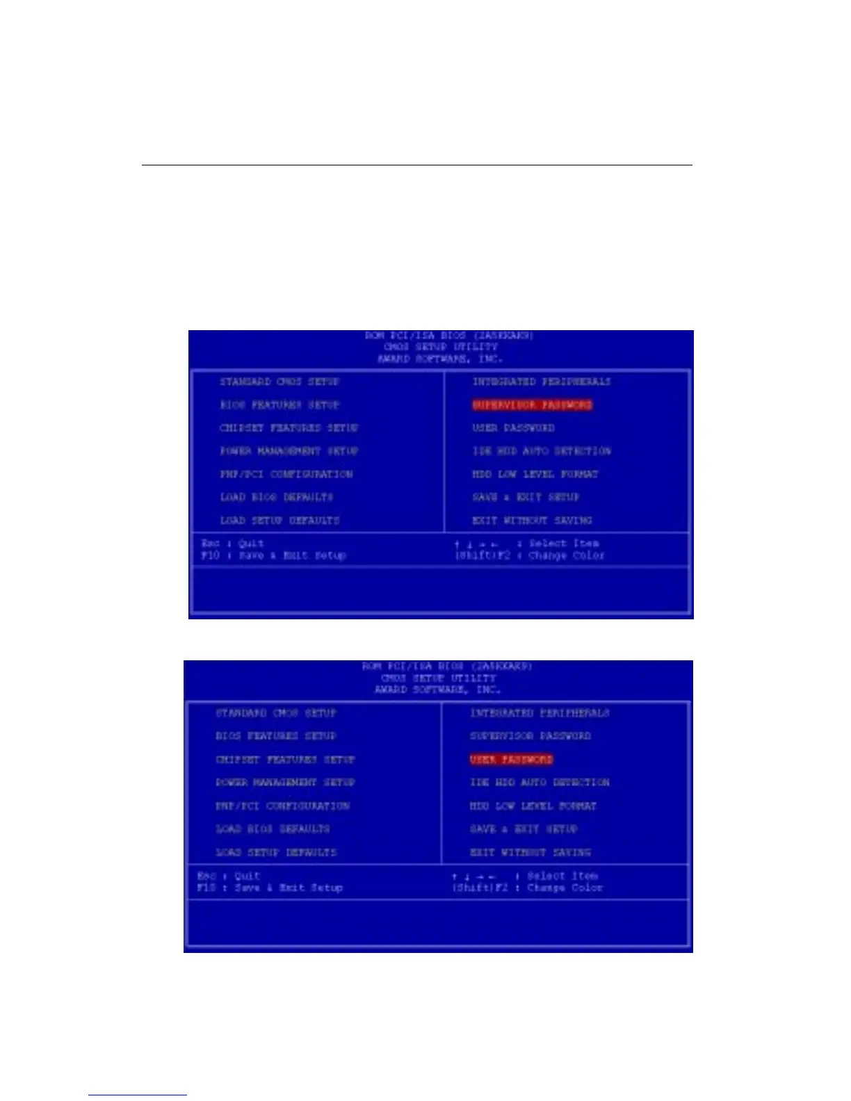 You can set either SUPERVISOR or USER PASSWORD, or both of