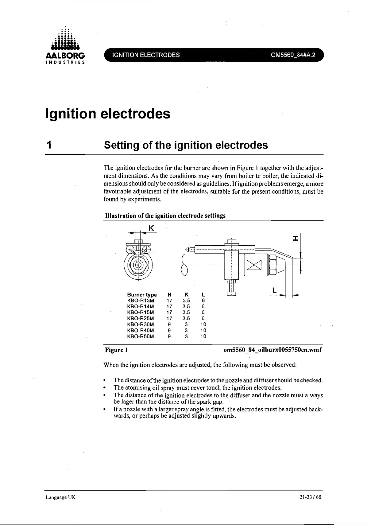 The ignition electrodes for the burner are shown in Figure 1 together with the adjust-