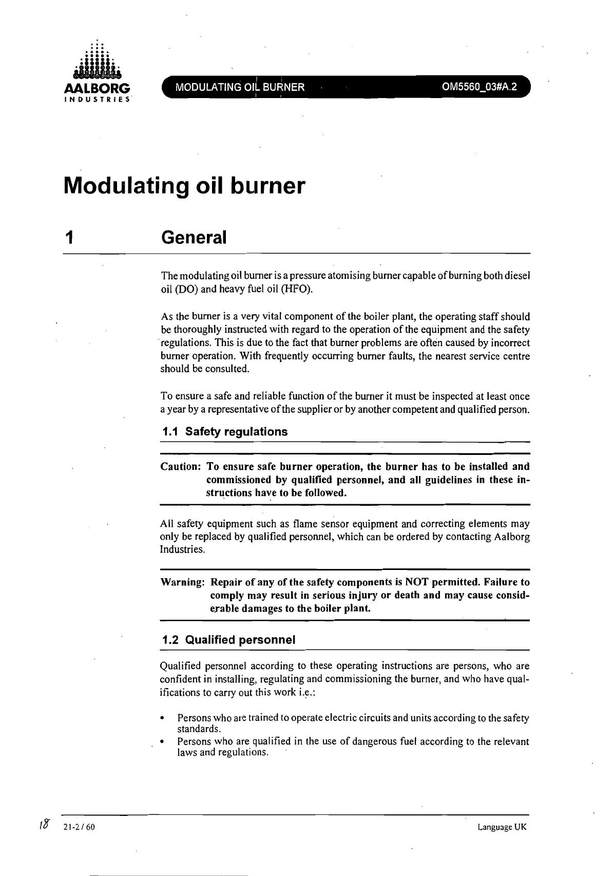 . regulations. This is due to the fact that burner problems are often caused by incorrect