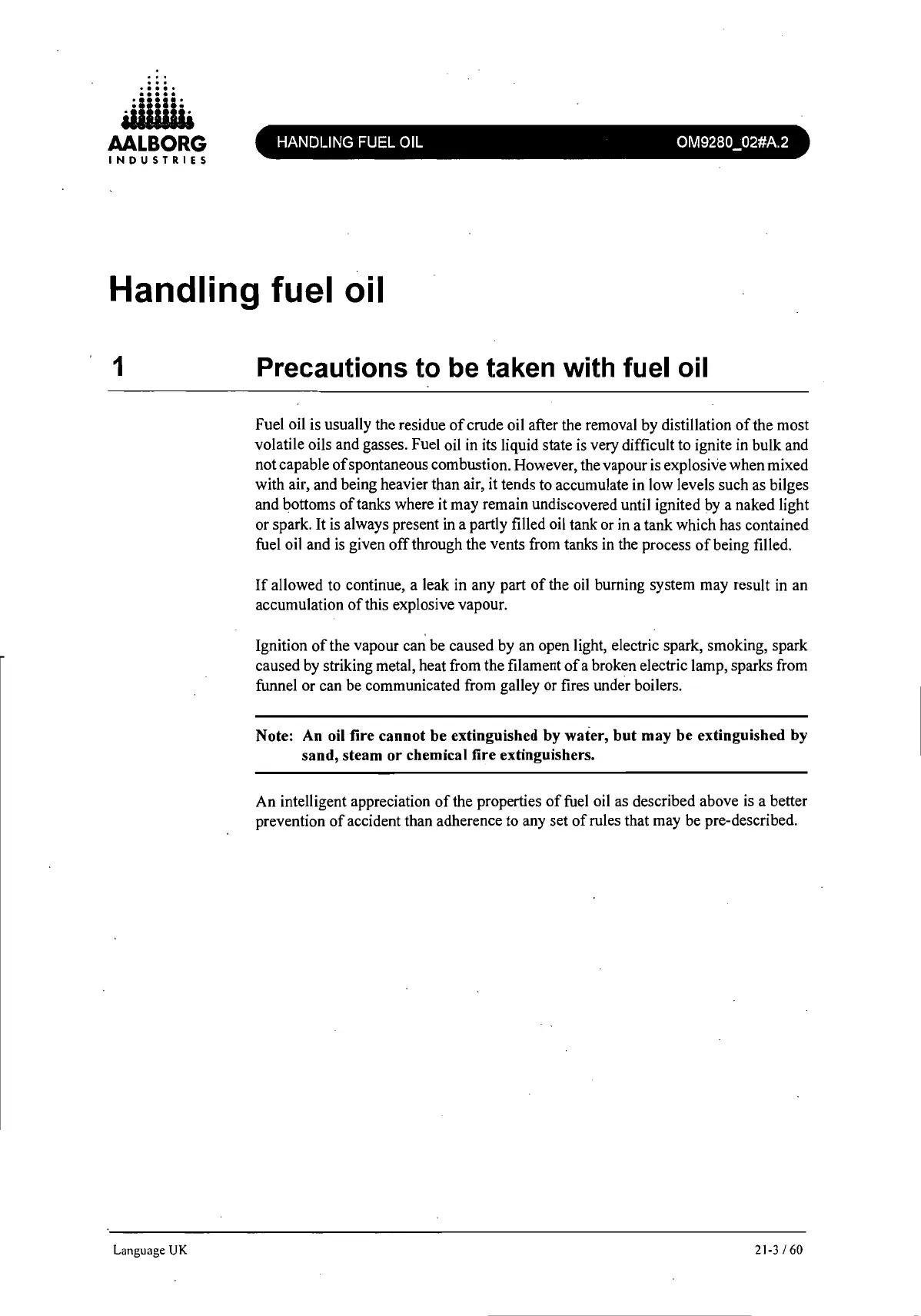 Precautions to be taken with fuel oil
