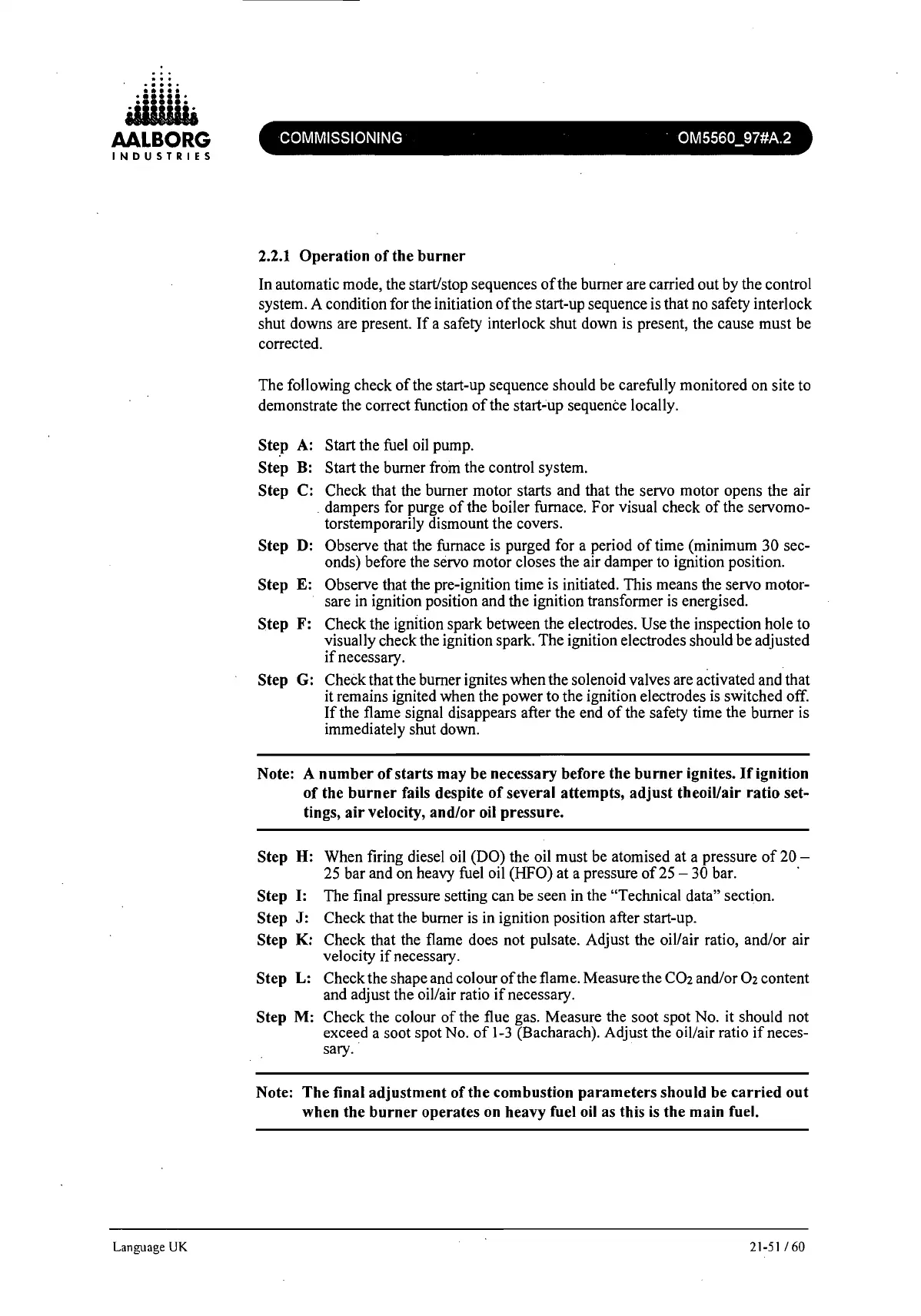 Step H: When firing diesel oil (DO) the oil must be atomised at a pressure