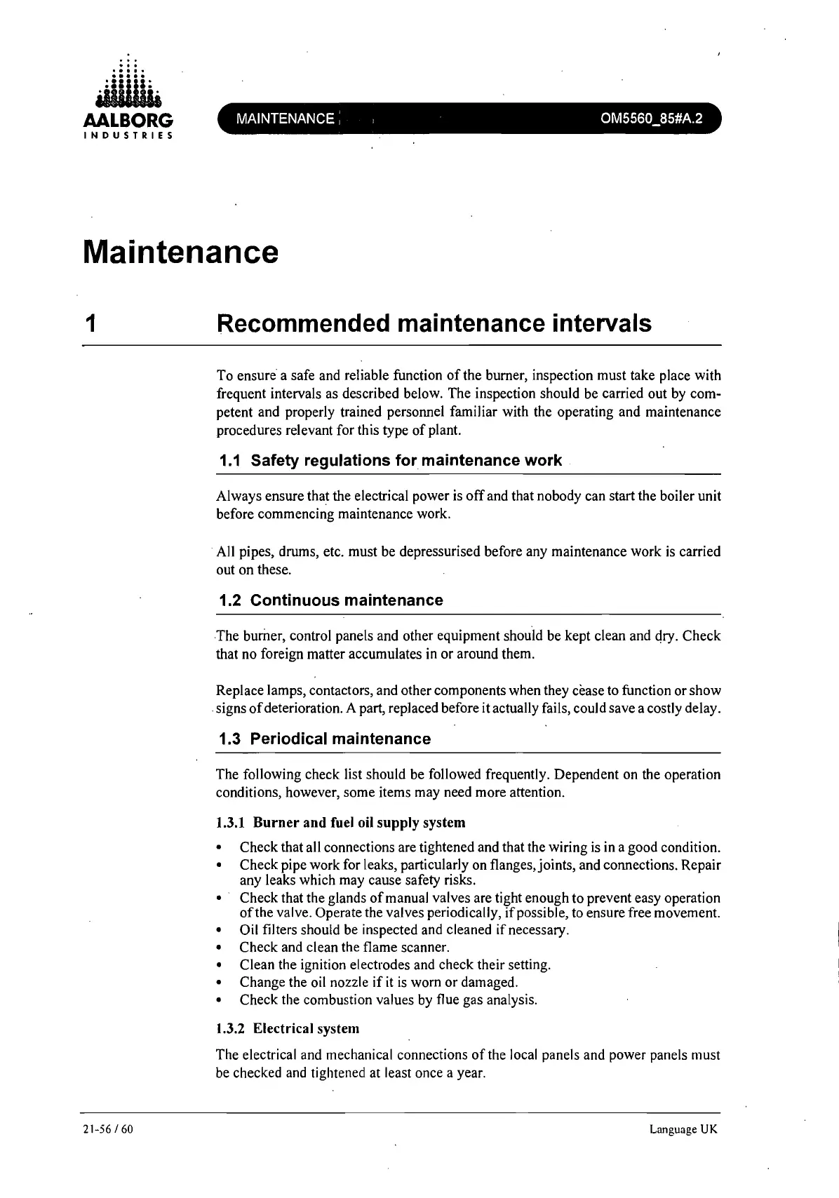 burner, control panels and other equipment should be kept clean and "ry. Check