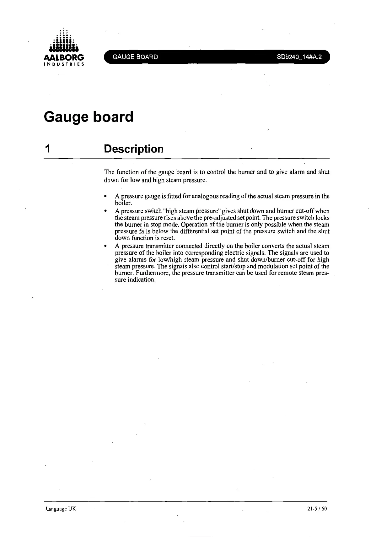 • A pressure switch "high steam pressure" gives shut down and burner cut-offwhen