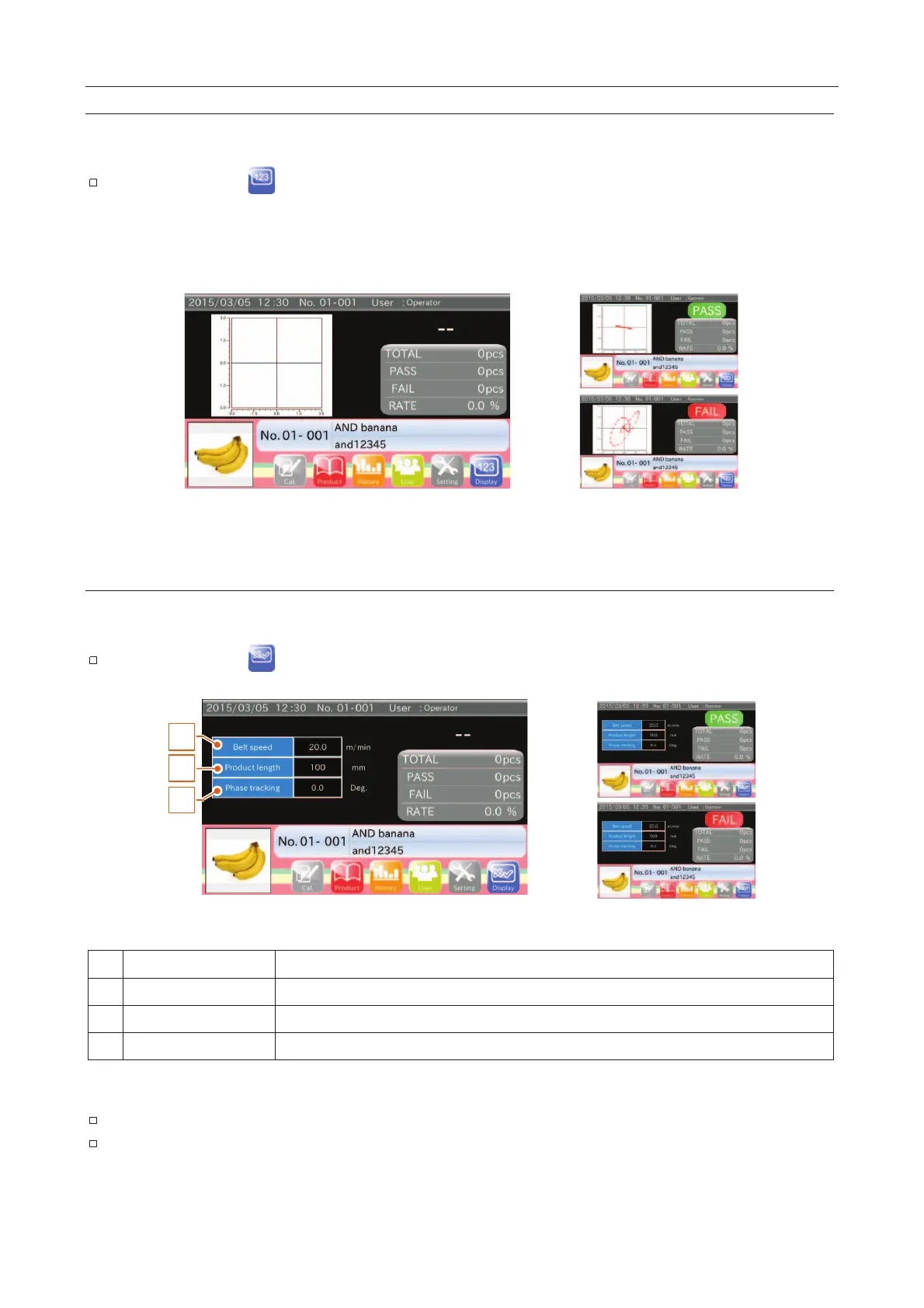 Touch the "Display " icon to switch to the "Inspection" screen.