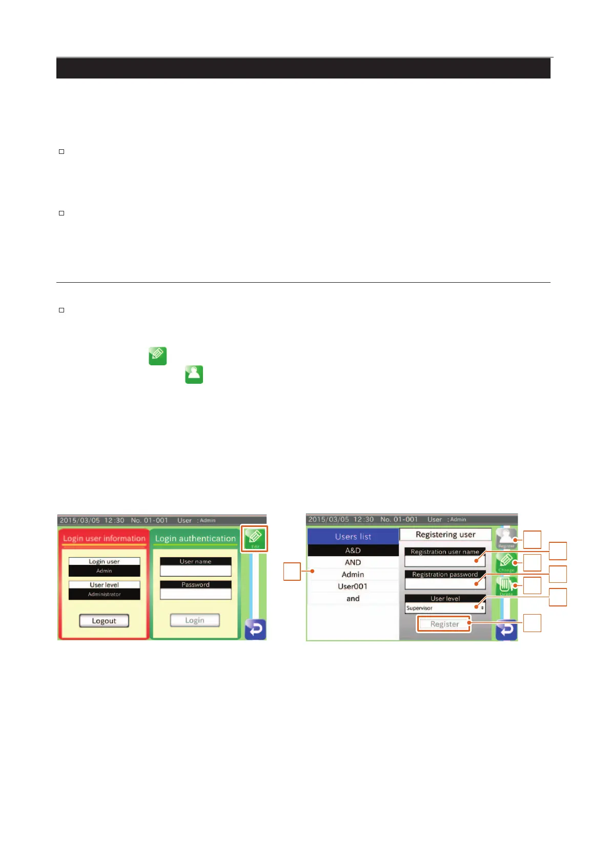 Password and user level in the list can be changed after user registration.