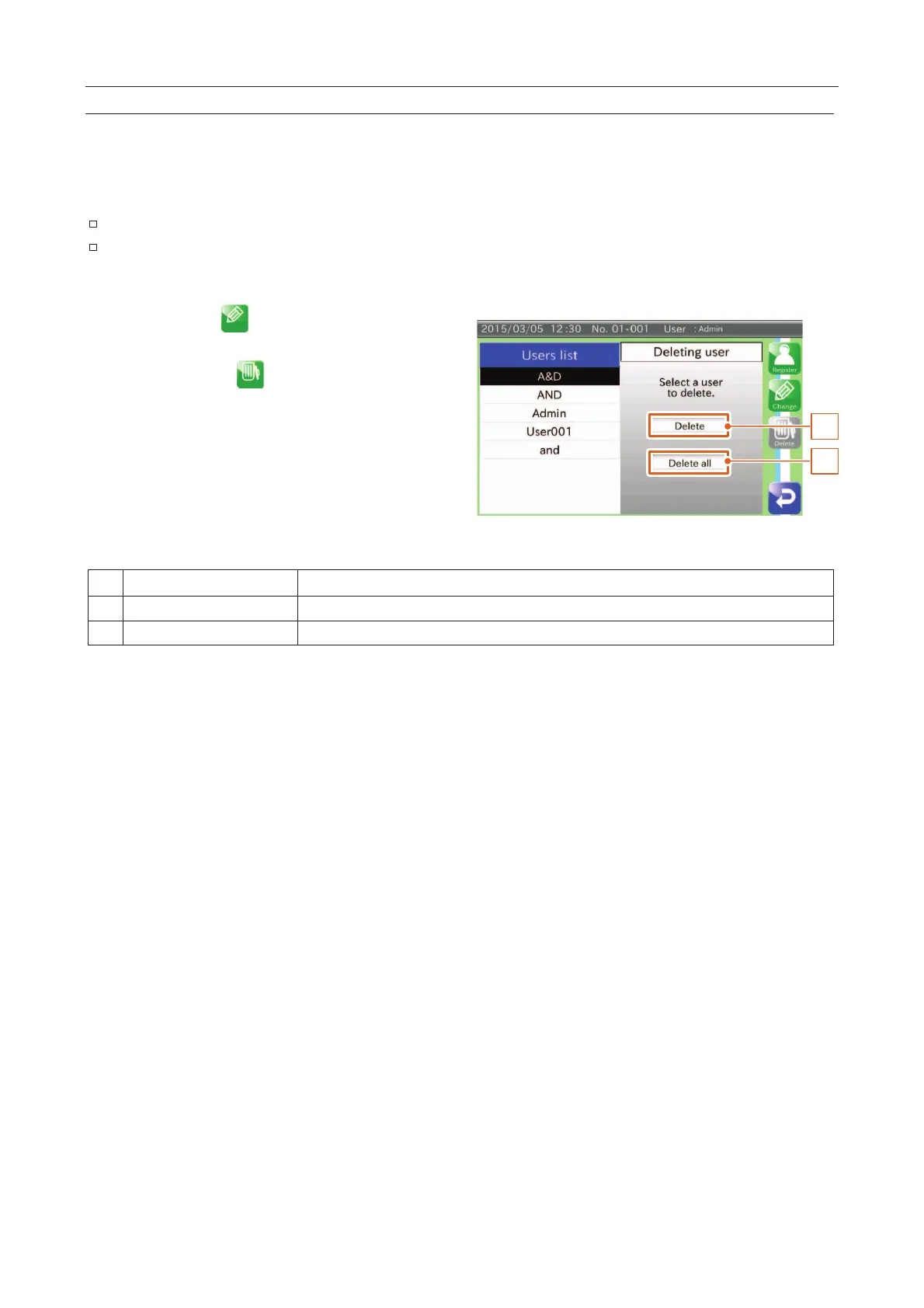 1. Touch the "Delete all" button to display the "Delete all" dialog box and touch the "Yes" button.
