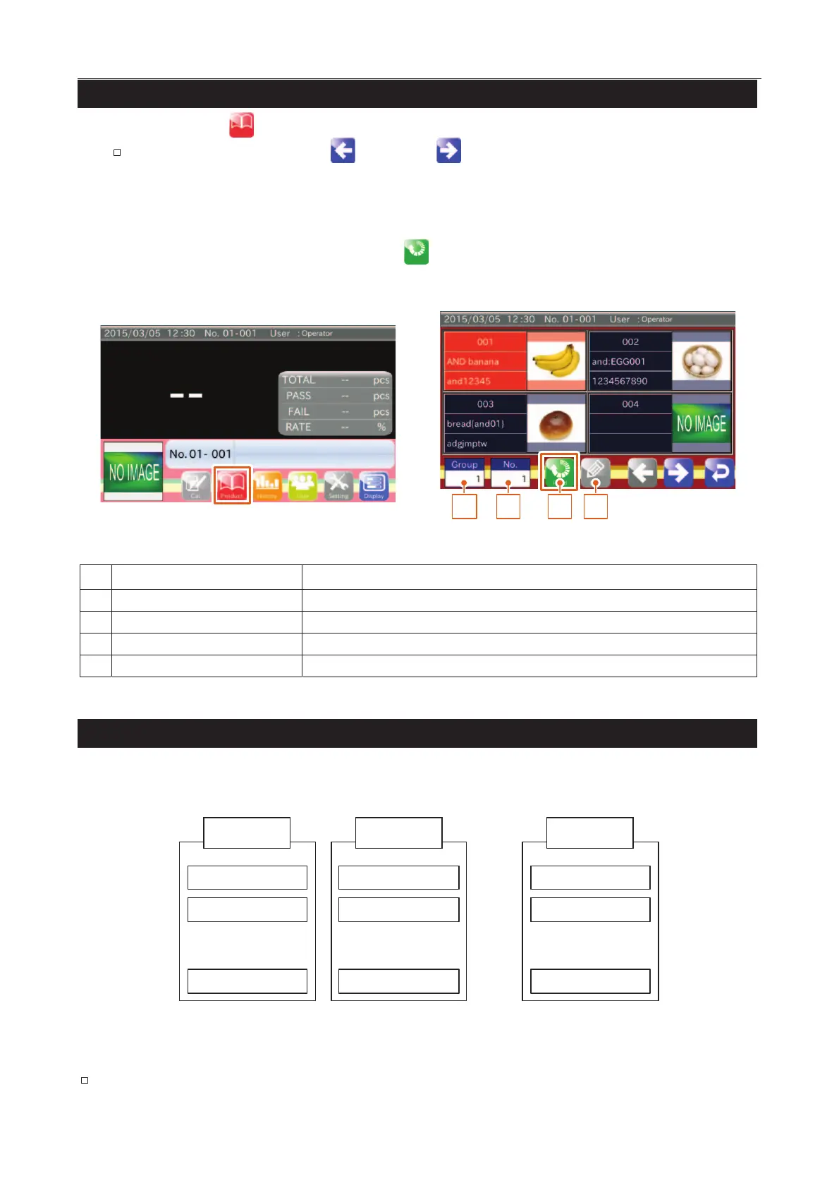 1. Touch the "Product " icon in the "Home" screen to display the "Product selection" screen.
