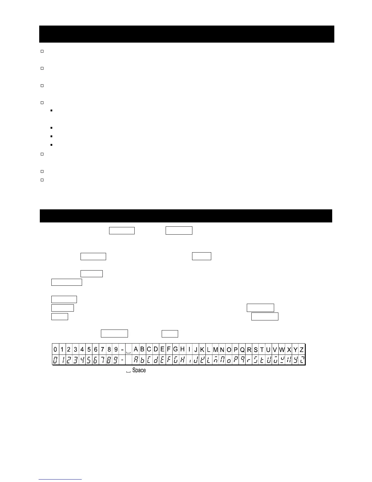 Refer to the display character set shown below.