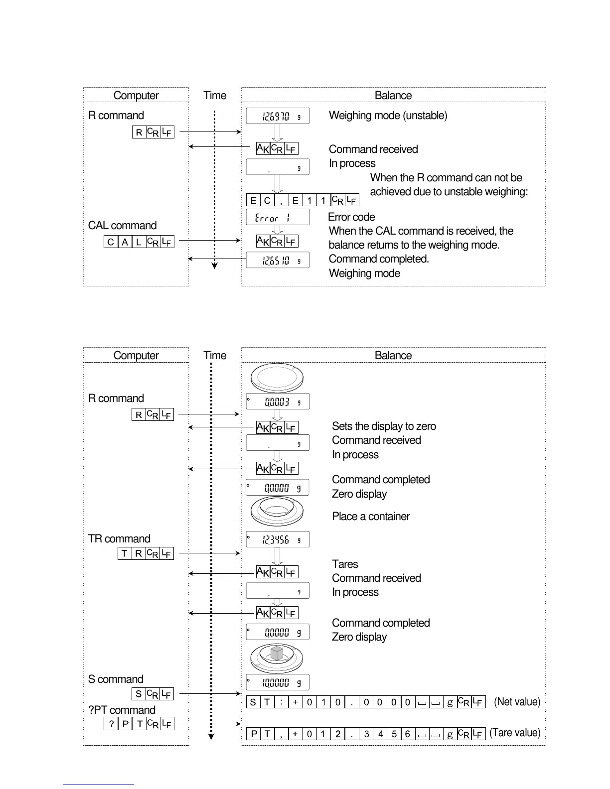 This example is of an error using the R command. "erCd on" is used. The balance transmits an error