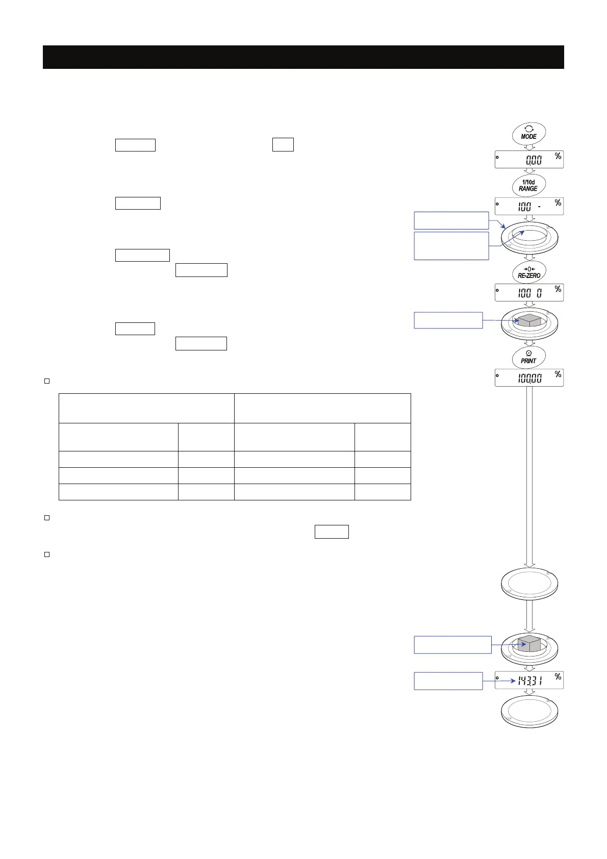 If the percent mode can not be selected, refer to "5. Weighing Units".