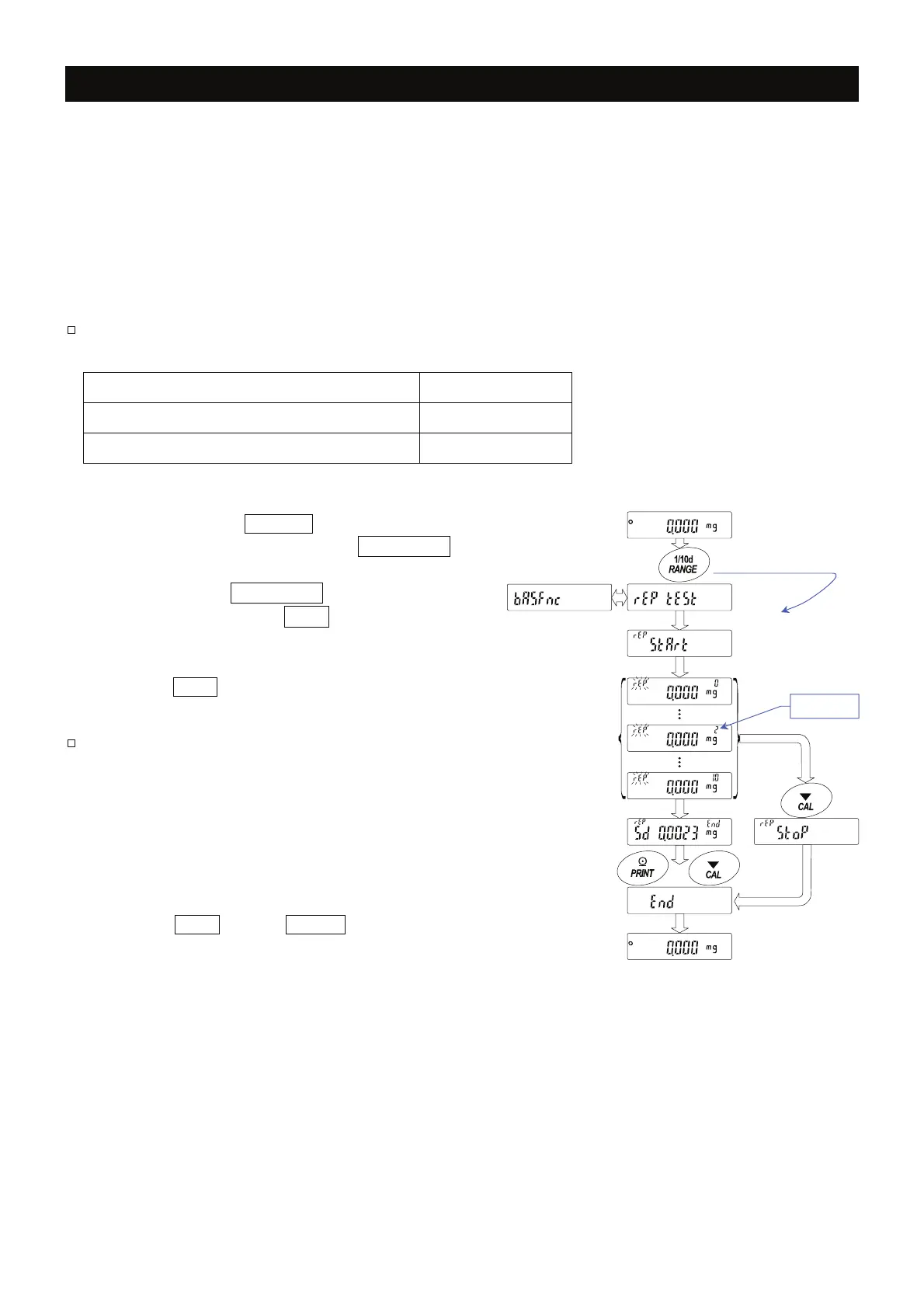 The repeatability test measures the built -in mass 10 times and displays the standard deviation.