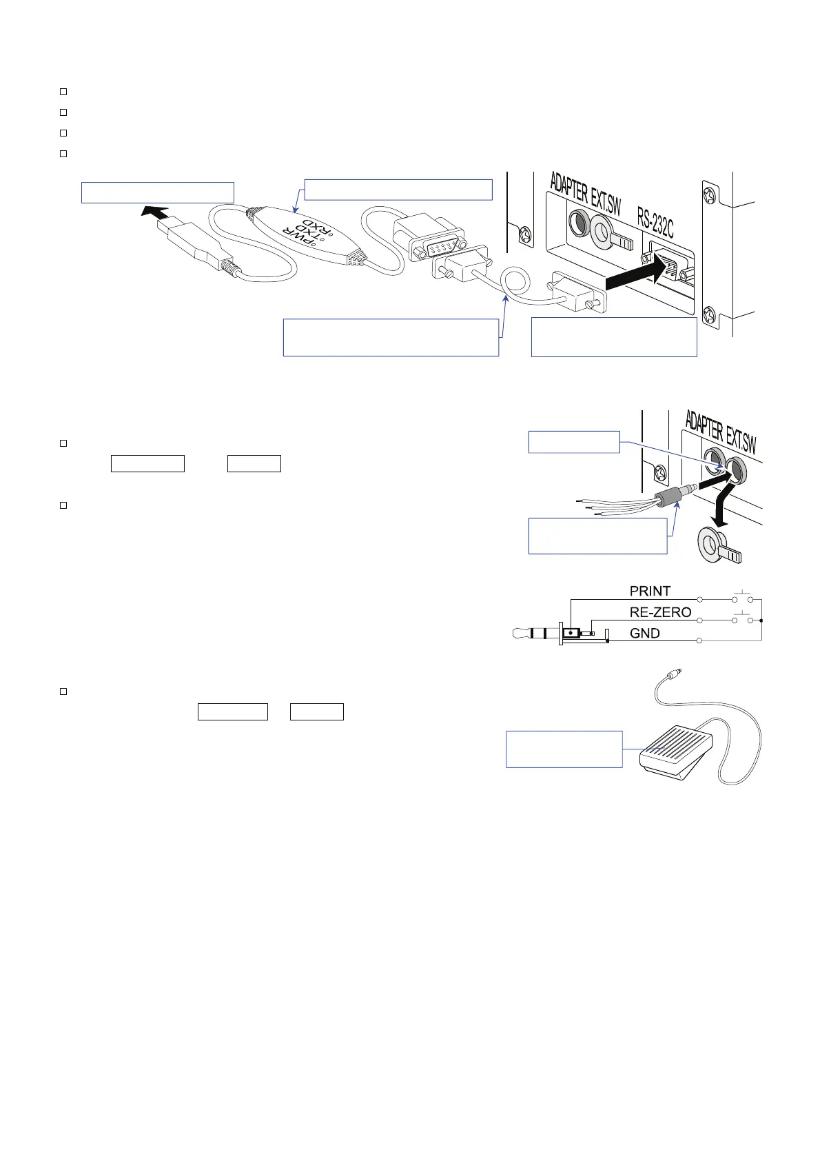 An RS-232C cable is provided to connect the USB converter to the balance.