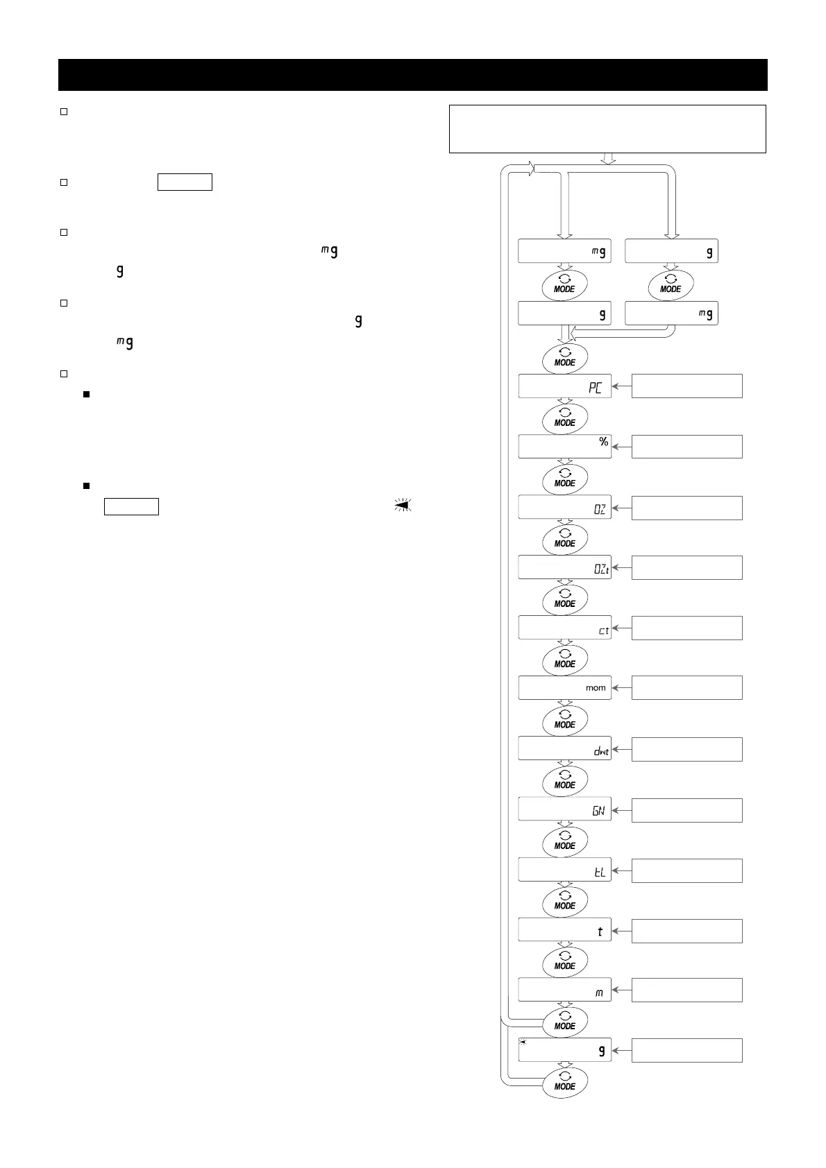 display the units and weighing modes in order.