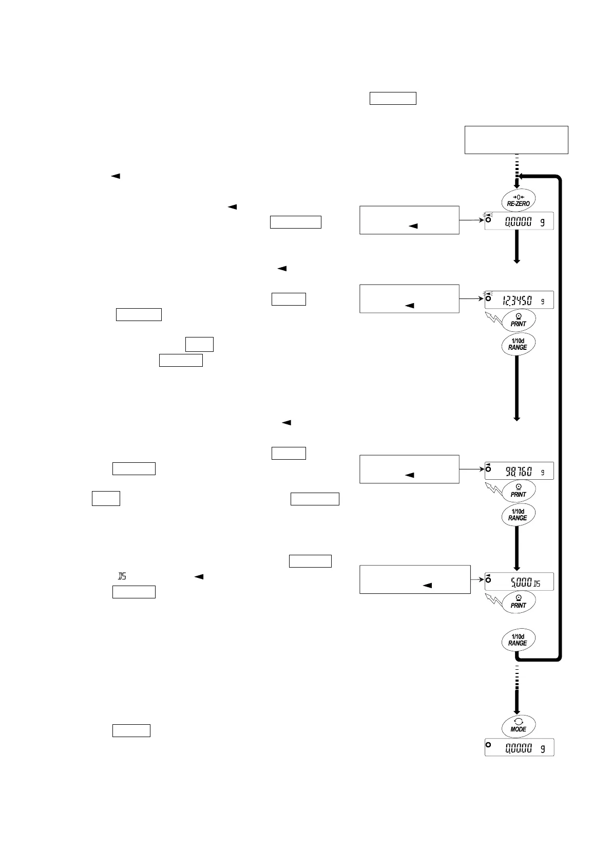 Press the RANGE key to confirm the weight value in