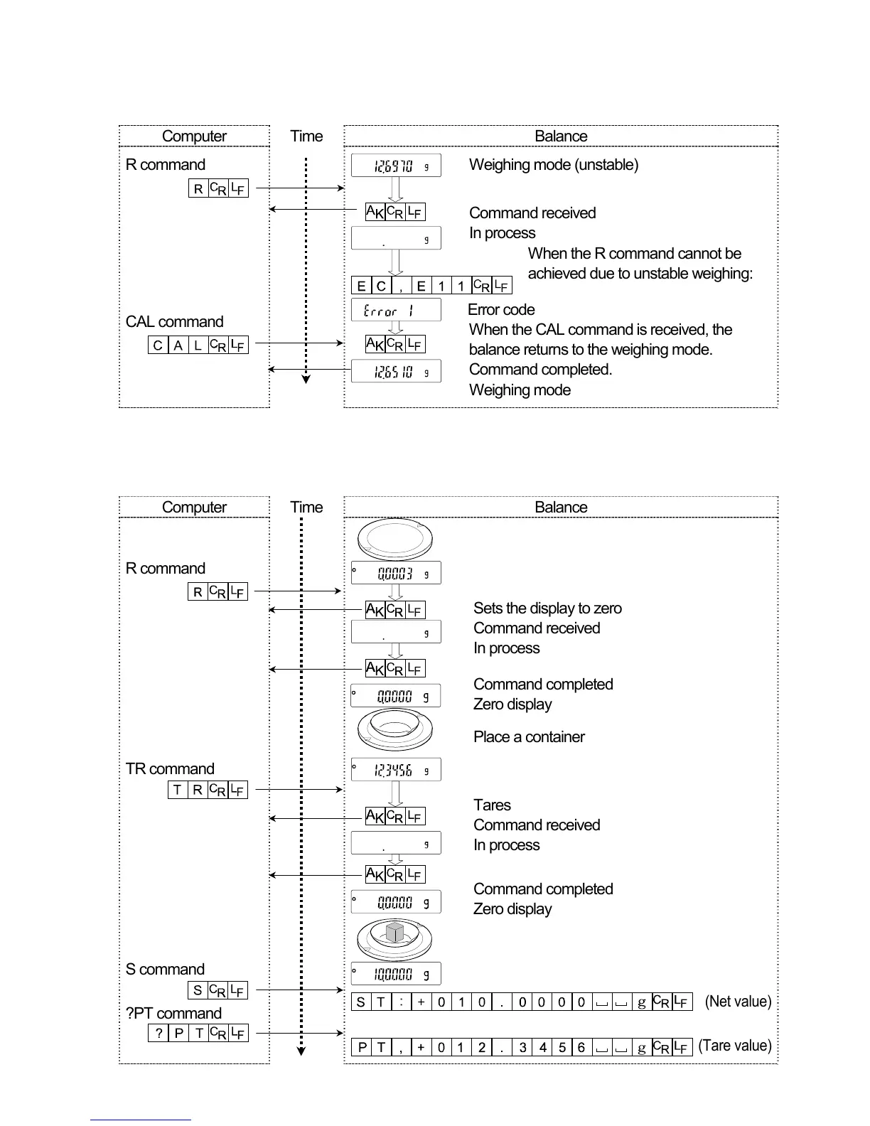This example is of an error using the R command. "erCd on" is used. The balance transmits an error