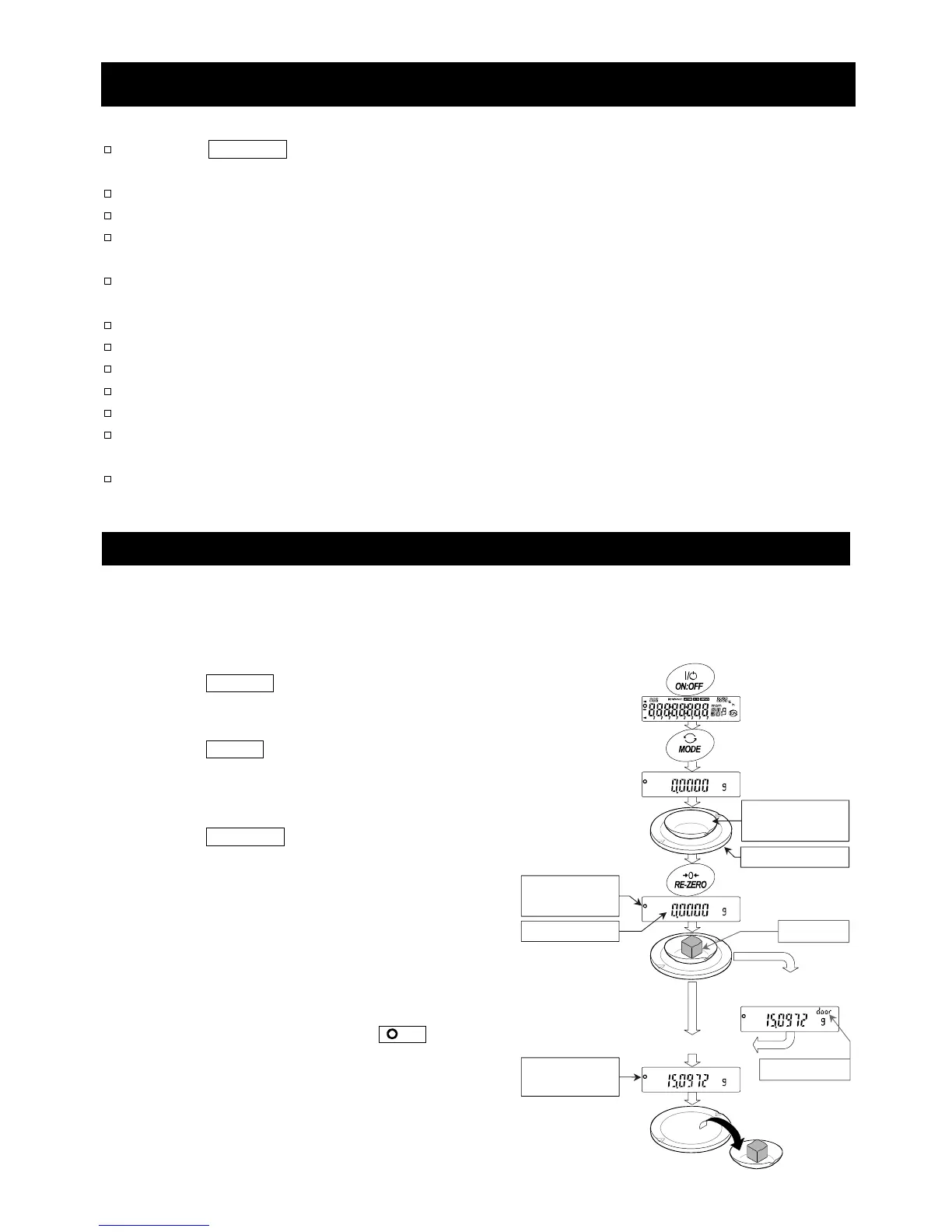 Press the RE-ZERO key each time, before placing a sample on the weighing pan, to prevent