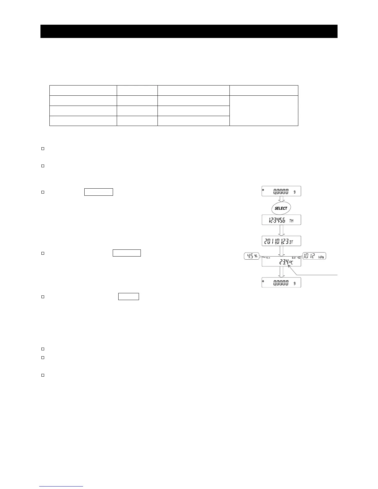 In the weighing mode, the built-in clock and environmental sensors (temperature, humidity,