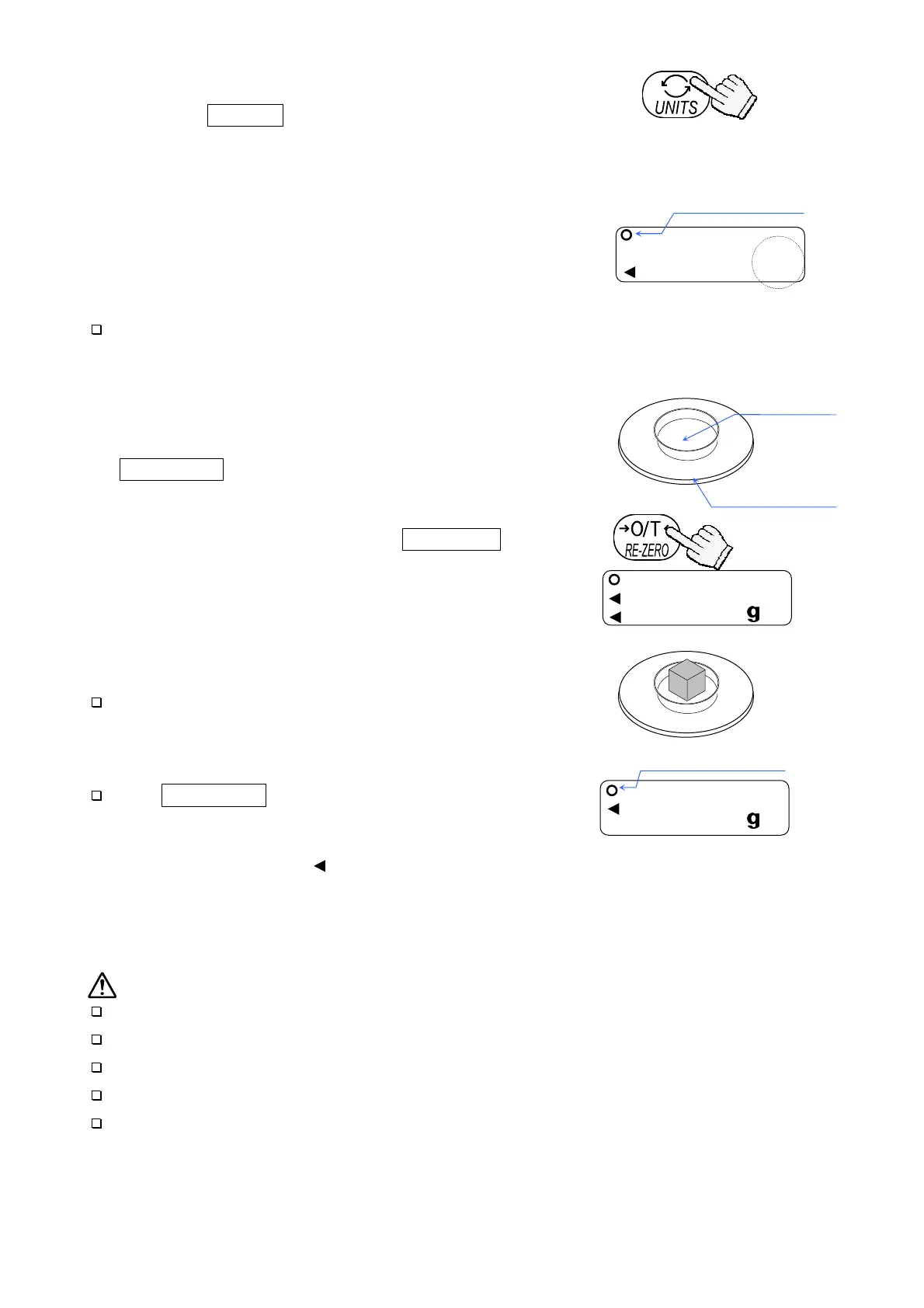 on the weighing pan, and press the RE-ZERO