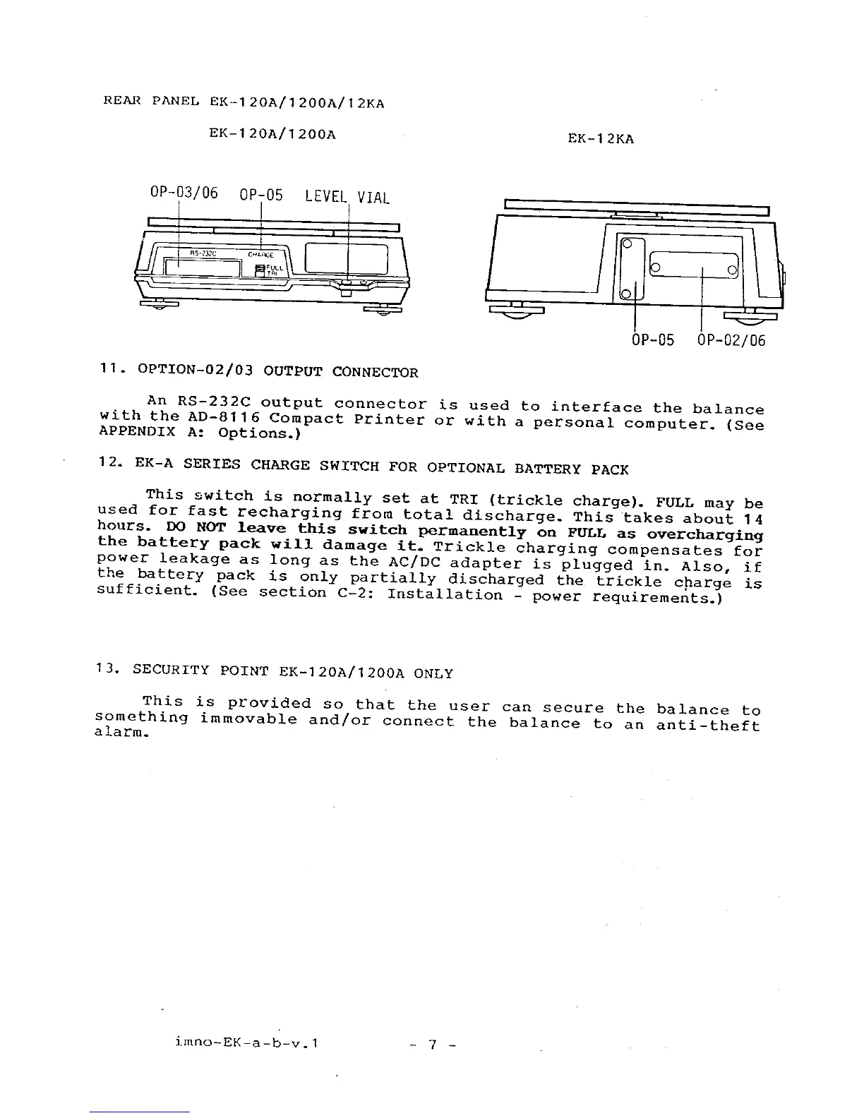 A&D EK-120A - REAR PANEL