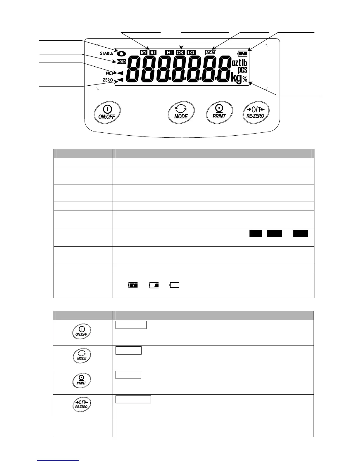 STABLE indicator Turns on when the weight value is stable and is ready to be read.