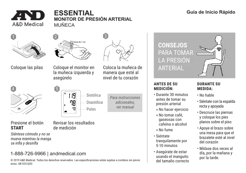 © 2019 A&D Medical. Todos los derechos reservados. Las especicaciones están sujetas a combios sin previo