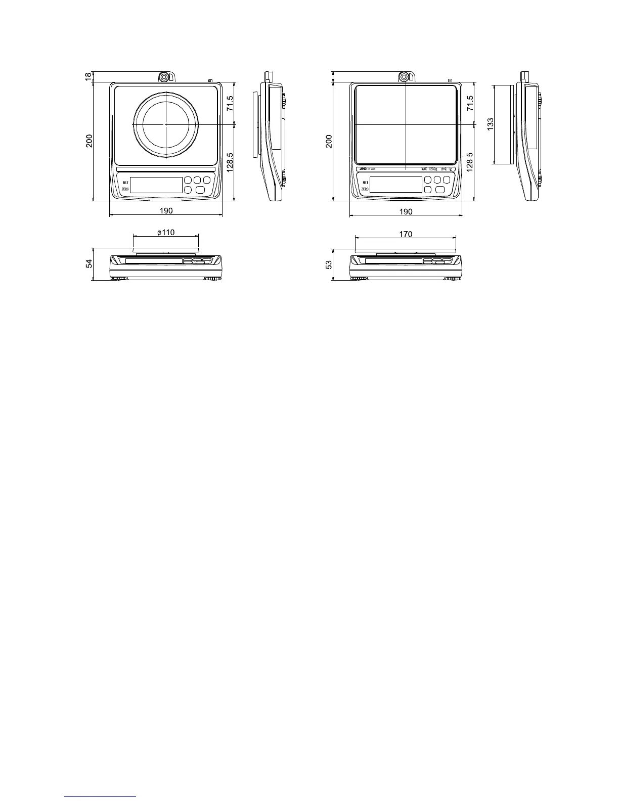 A&D EW-150i - Physical Dimensions