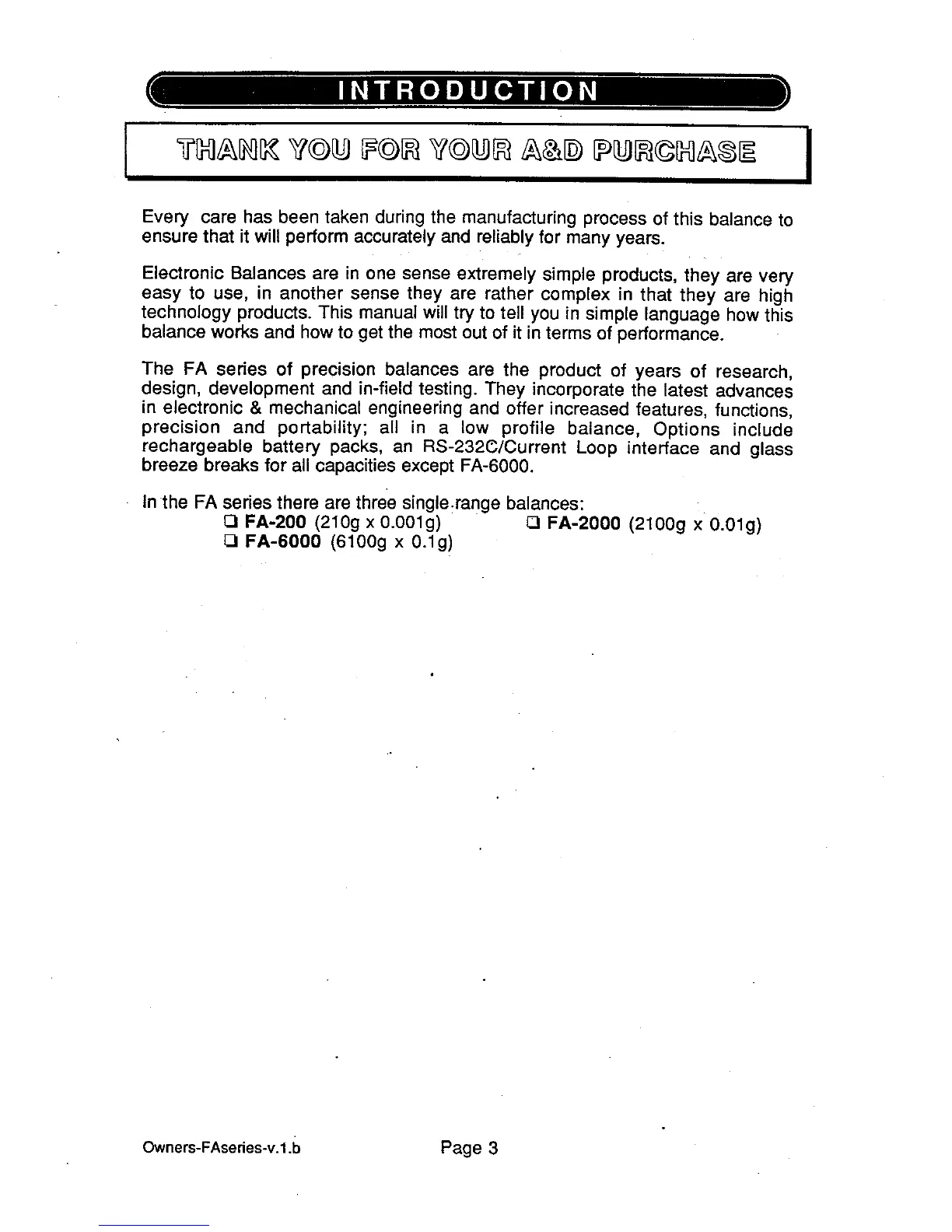 A&D FA-200 - UNPACKING YOUR BALANCE