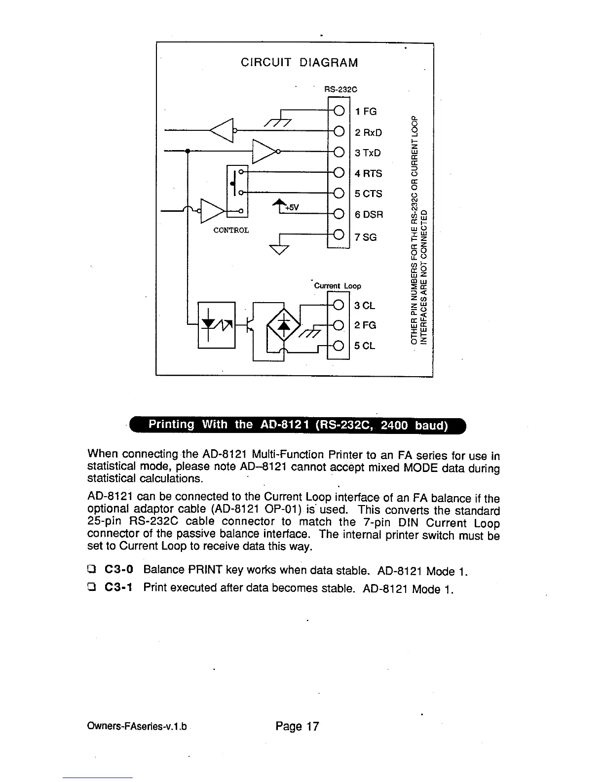 A&D FA-2000 - Circuit Diagram; Printing with the AD-8121